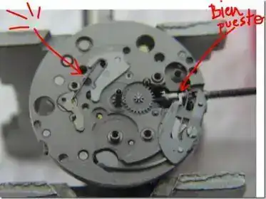 La meto y funciona en la posición de ajustar la hora, pero sólo en ésa. Al presionar no engrana la posición de cambiar fecha ni la de cargar... He probado una docena de veces y siempre lo mismo, si presiono la tija presionando el pulsador que se usa para extraerla alcanza una posición que parece la de carga, pero al girar la corona carga y a la vez mueve las agujas y si saco la corona a la posición de puesta en hora ya es imposible volver a la de carga (salvo que presione el pulsador que se usa para extraerla).