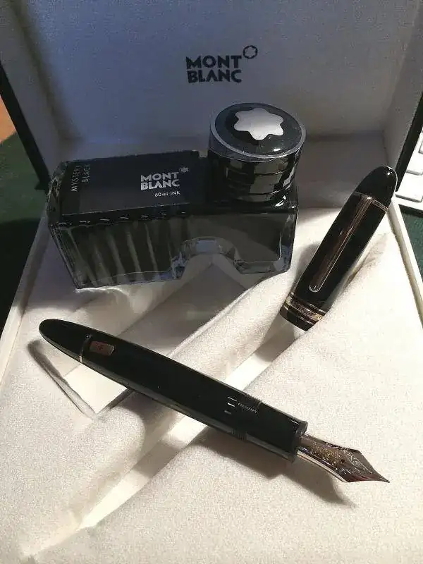 Pues la última en entrar ha sido esta MB 149 (113607) punto F, regalo de la señora por reyes, es de oro rosa como la 90 aniversario pero sin serlo, no trae el 90 en el plumin, pero todo lo demás si comparandola con mi 146 90 aniversario.