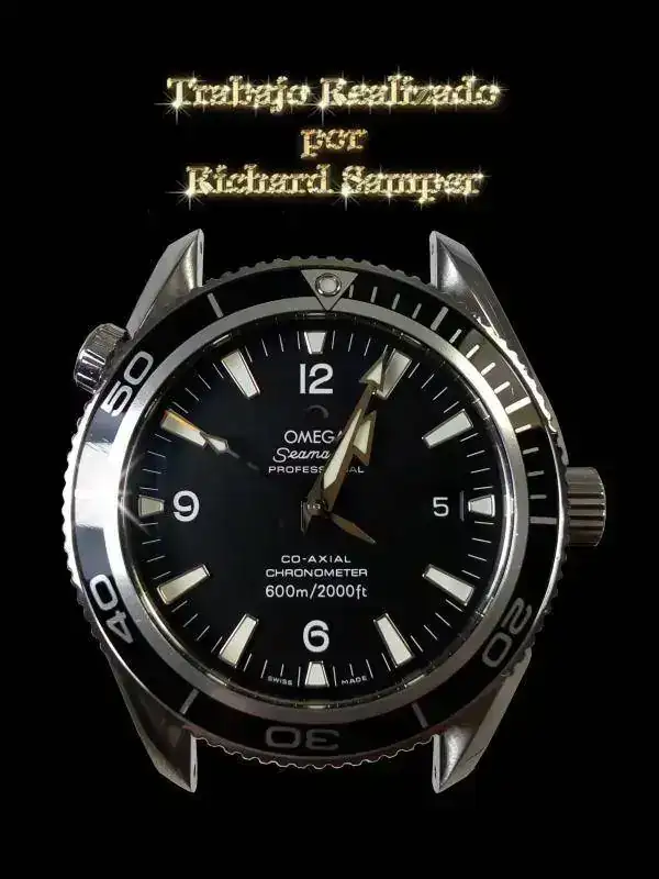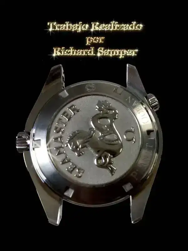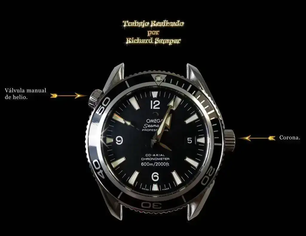 El anterior es un reloj Omega seamaster co-axial 600 metros. Para continuar, una imagen del lado de la tapa. Os invito a ver la imagen subsiguiente.