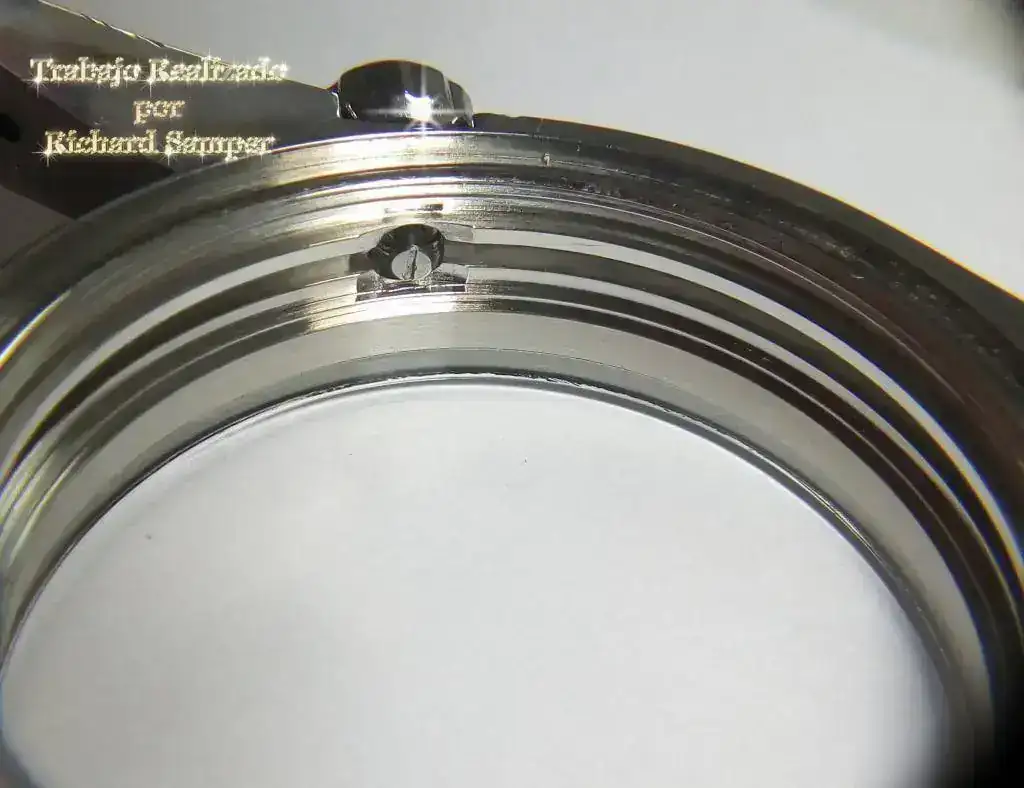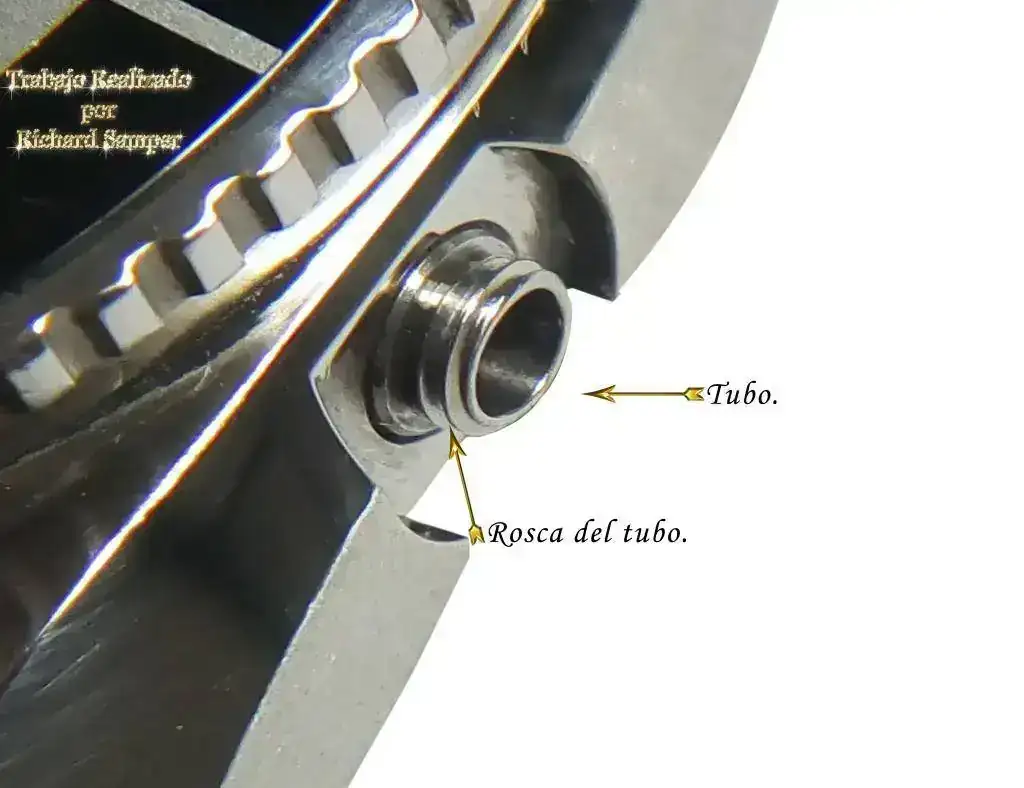 Si observáis con cuidado os daréis cuenta que el tubo que está en la caja del reloj, tiene una rosca externa.