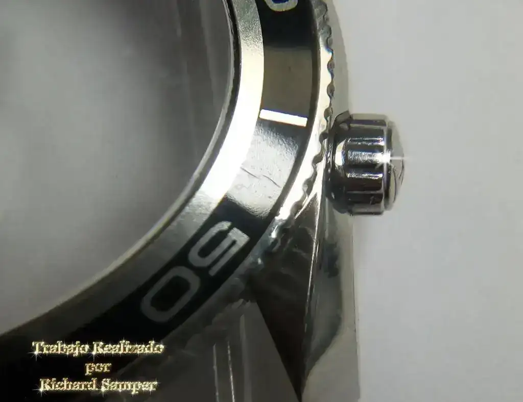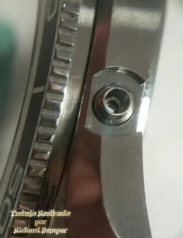 Dicho sea de paso, que para este post desmonté el brazalete o manilla. Hay algo muy singular en este reloj y es que tiene una válvula de helio. Os invito a ver la imagen subsiguiente.