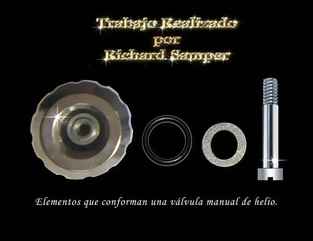 Es importante que tengáis en cuenta algo tocante al tornillo. En virtud de este comentario os insto a apreciar la imagen que hice para vosotros; en la cual he descrito las partes “principales” del tornillo de la válvula manual de helio. Os invito a ver le imagen subsiguiente.