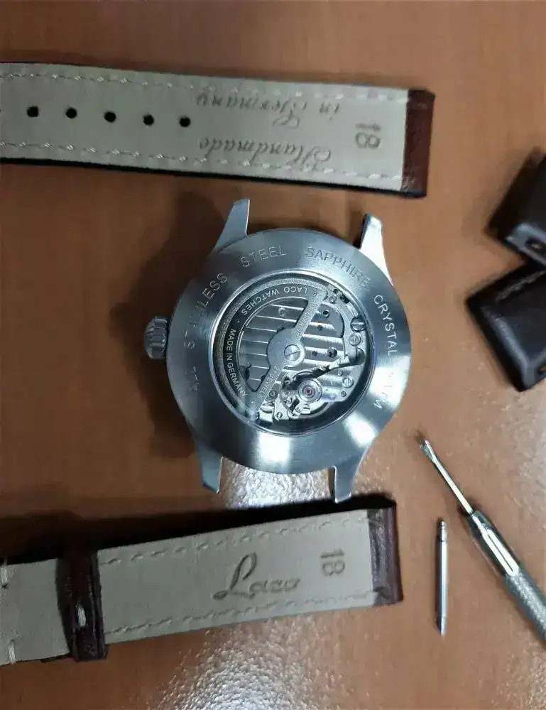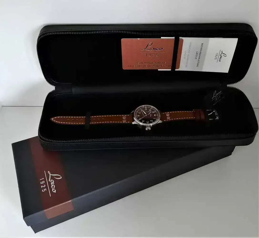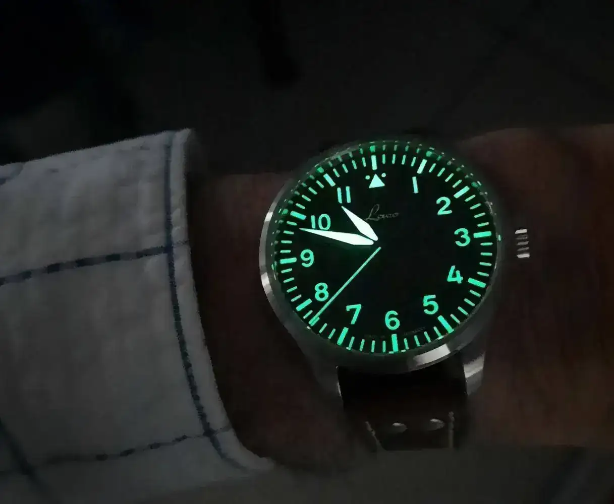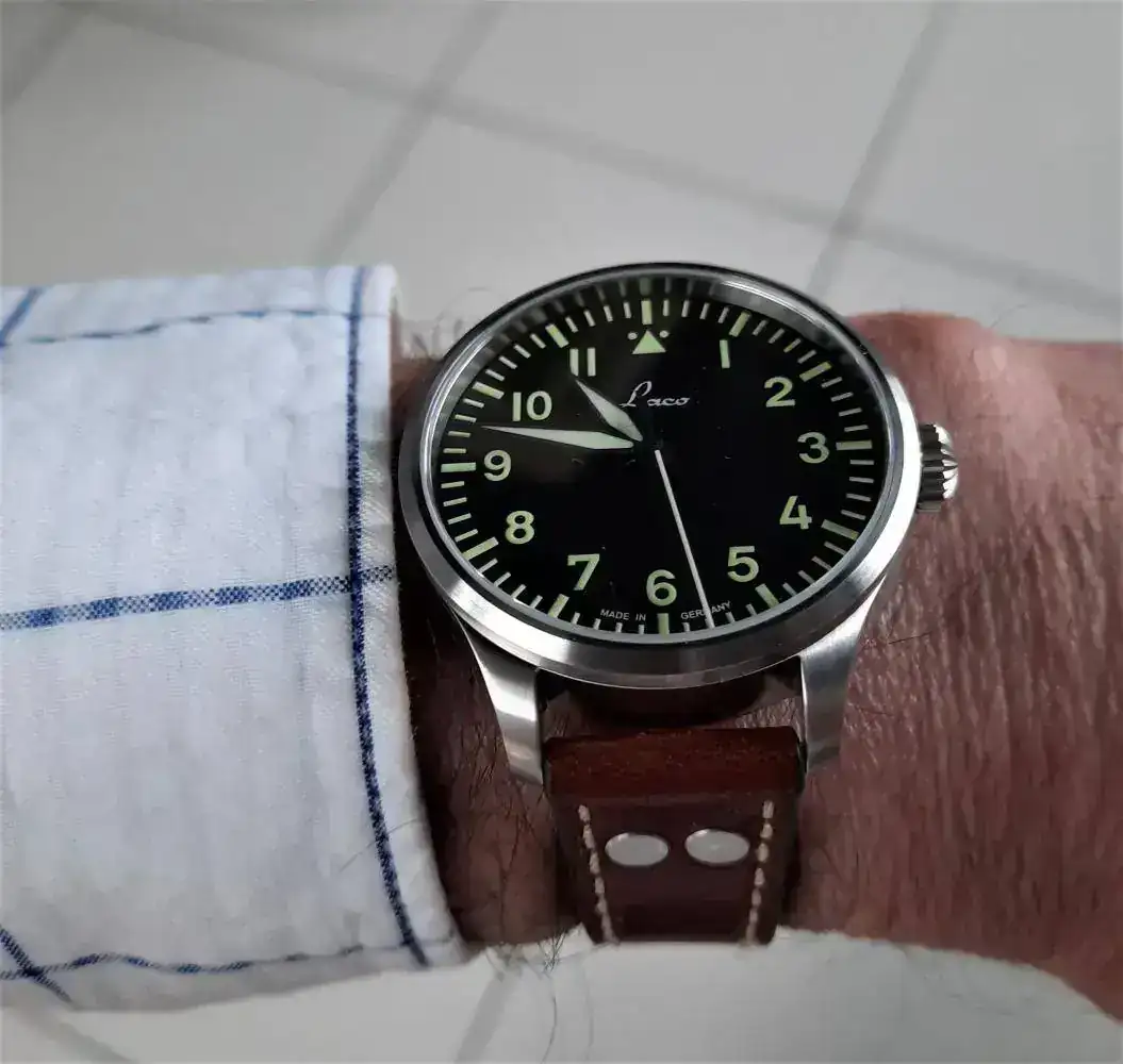 Se trata de la versión tipo A, es menos “aviadora” que la B pero preferí una opción mas polivalente para su uso en tiempos de paz. Lleva un movimiento Miyota 821A con remonte manual y parada de segundero, según parece Laco revisa y ajusta con cierto cariño todos los movimientos en el montaje de sus relojes, sería bueno que alguno de los gurús del foro confirmase este aspecto.