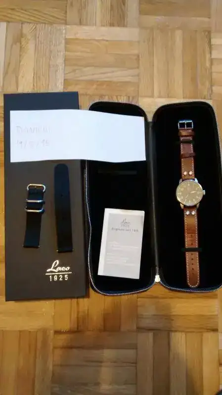 Vendo este bonito Laco Augsburg, reseño que la correa original tiene tres agujeros extra no muy bien hechos (como se puede ver en la foto), las correas de Laco son para hombretones
