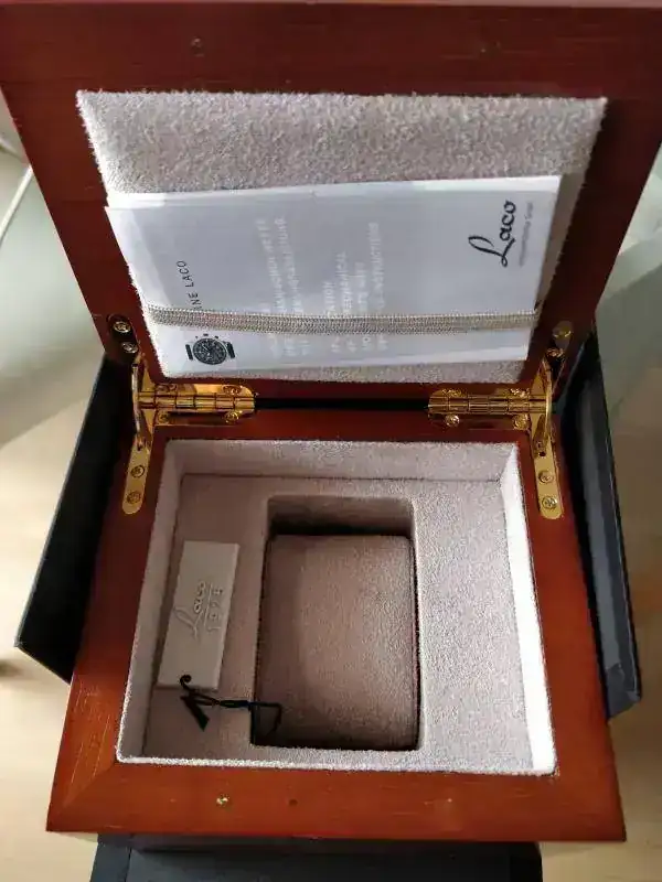 EL RELOJ LO ENTREGO CON SU CAJA DE CARTÓN NEGRA, CAJA DE MADERA Y MANUAL. COMO DIGO EL RELOJ ESTA PERFECTO, SI SE VE ALGO EN LAS FOTOGRAFÍAS ES PELUSA.