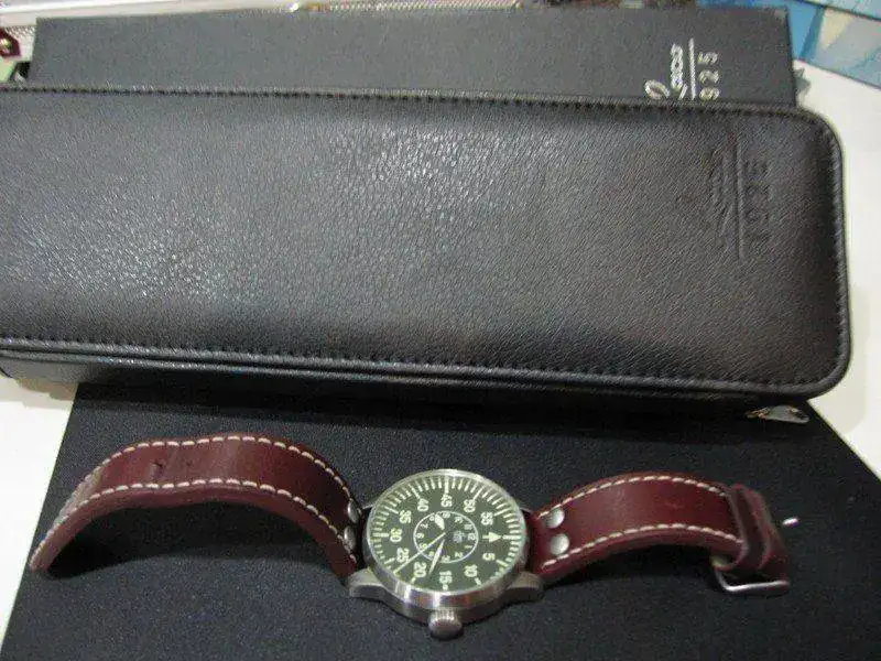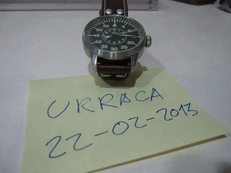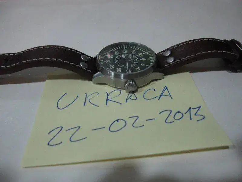 Para hacer caja ante la entrada de una nueva pieza en la colección, pongo a la venta este precioso LACO PILOT MIYOTA DIAL B, se entrega con documentación, estuche y caja, fue adquirido hace poco más de un año al distribuidor oficial en España, y su estado es excepcional, ha sido muy poco utilizado y su uso ha sido muy muy cuidado, no le encuentro absolutamente ninguna marca reseñable, está impoluto, como nuevo, eso sí, la correa de cuero (la original que trae) a pesar de su poco uso si presenta las inevitables arruguillas que le salen desde el primer día que te pones el reloj, pero la correa está nueva también.