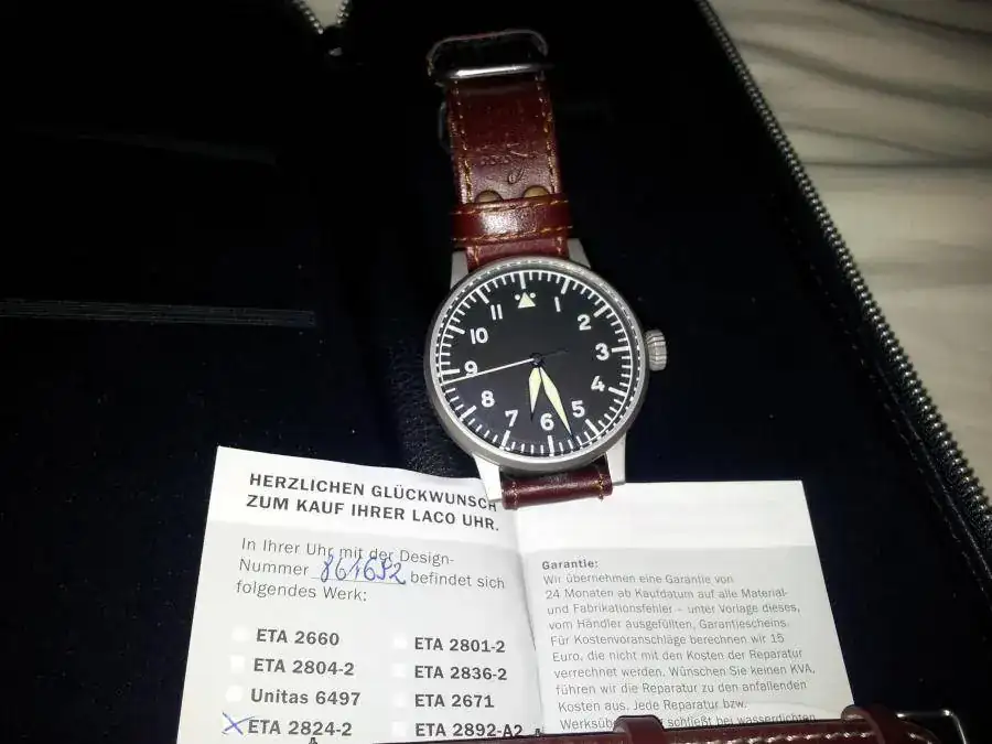 El reloj y correa original están al 99,99 % y la correa en concreto estaSIN ESTRENAR,ya que nada mas llegar le puse la de piloto que adquirí a la vez,tambien original LACO, y es la que lleva puesta y en buen estado.