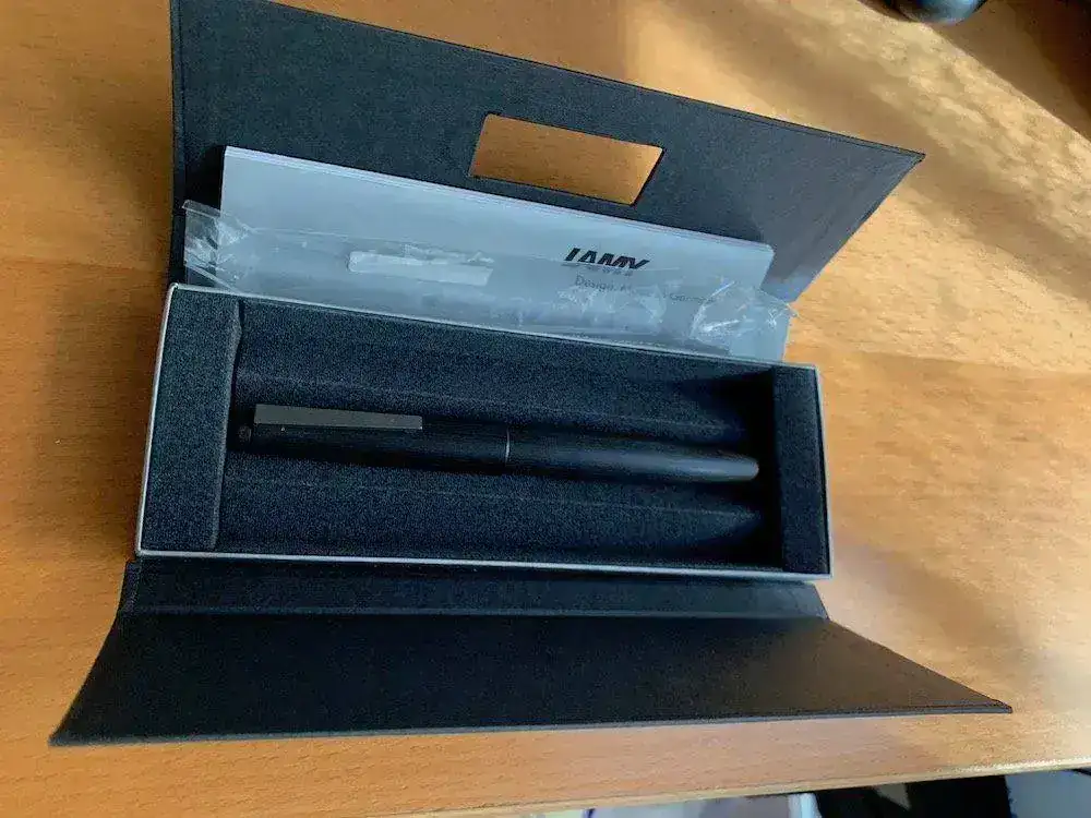 Haciendo un poco de limpieza en los cajones saco esta Lamy 2000 que no uso. La he entintado y usado muy pocas veces. Es una pluma diferente, bastante vistosa, pero al final parece que no me convence. A ver si la puede disfrutar algún compañero del foro. Pido por ella 90€, con envío por correo certificado incluido. Las fotos:
