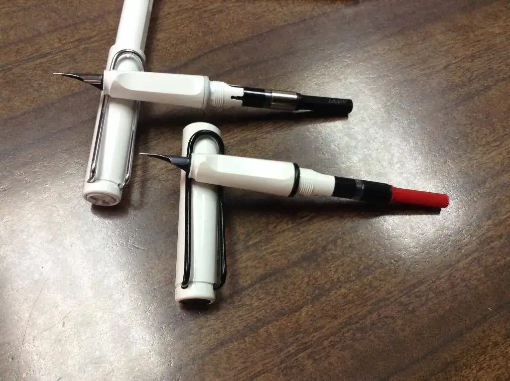 Las dos escriben de vicio, como todas mis Safaris. Excepto una, que tuve que tunear un poco el plumín, las demás le dan diez vueltas a varias plumas de tres cifras que he tenido.