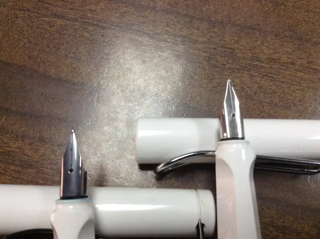 Puse a funcionar estas dos plumitas con bastante diferencia de edad y... bueno, pensé en poner las diferencias para entretenimiento general y para que, en caso necesario, no os den gato por liebre.