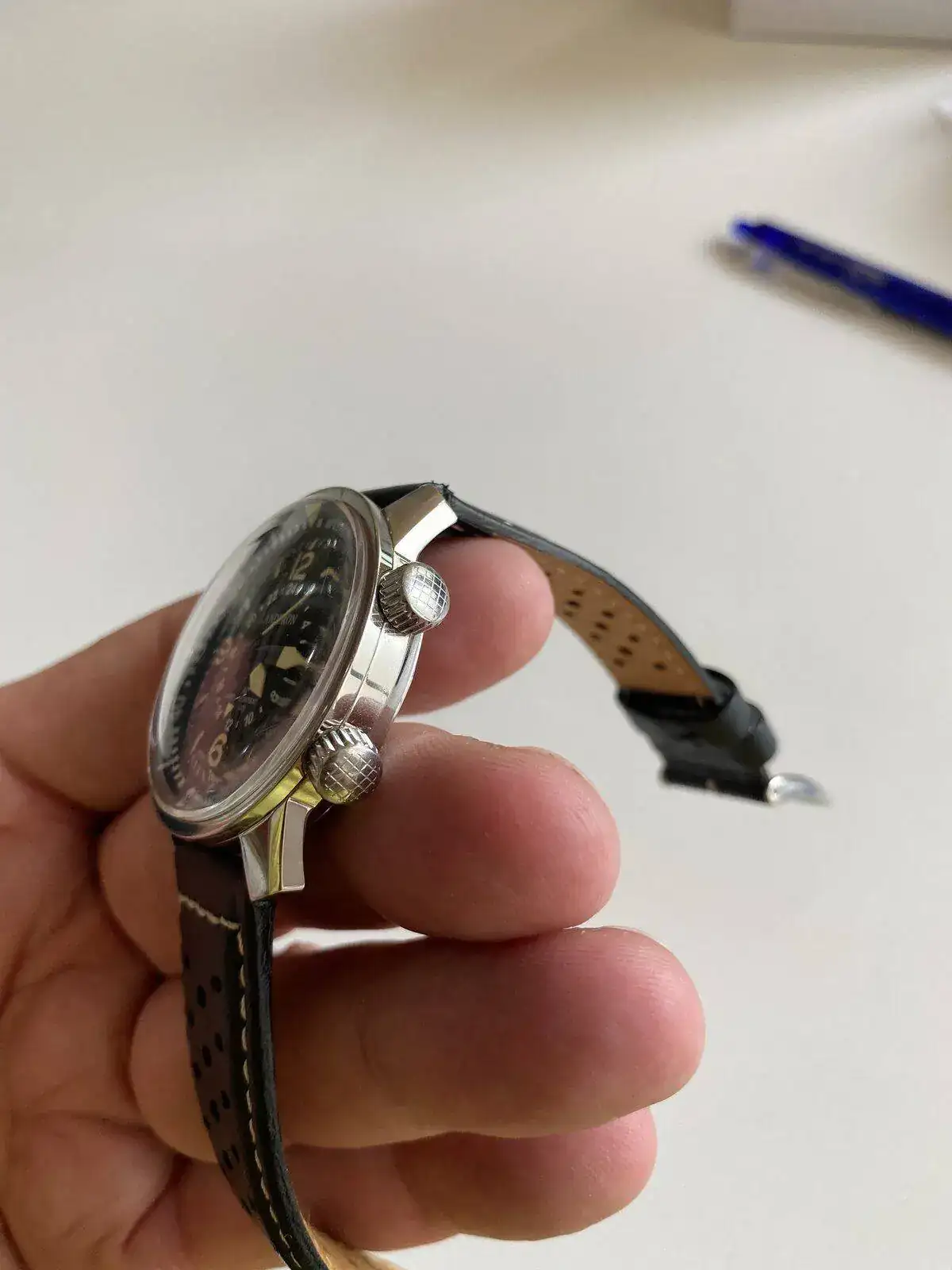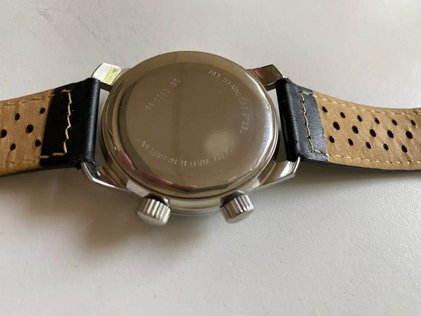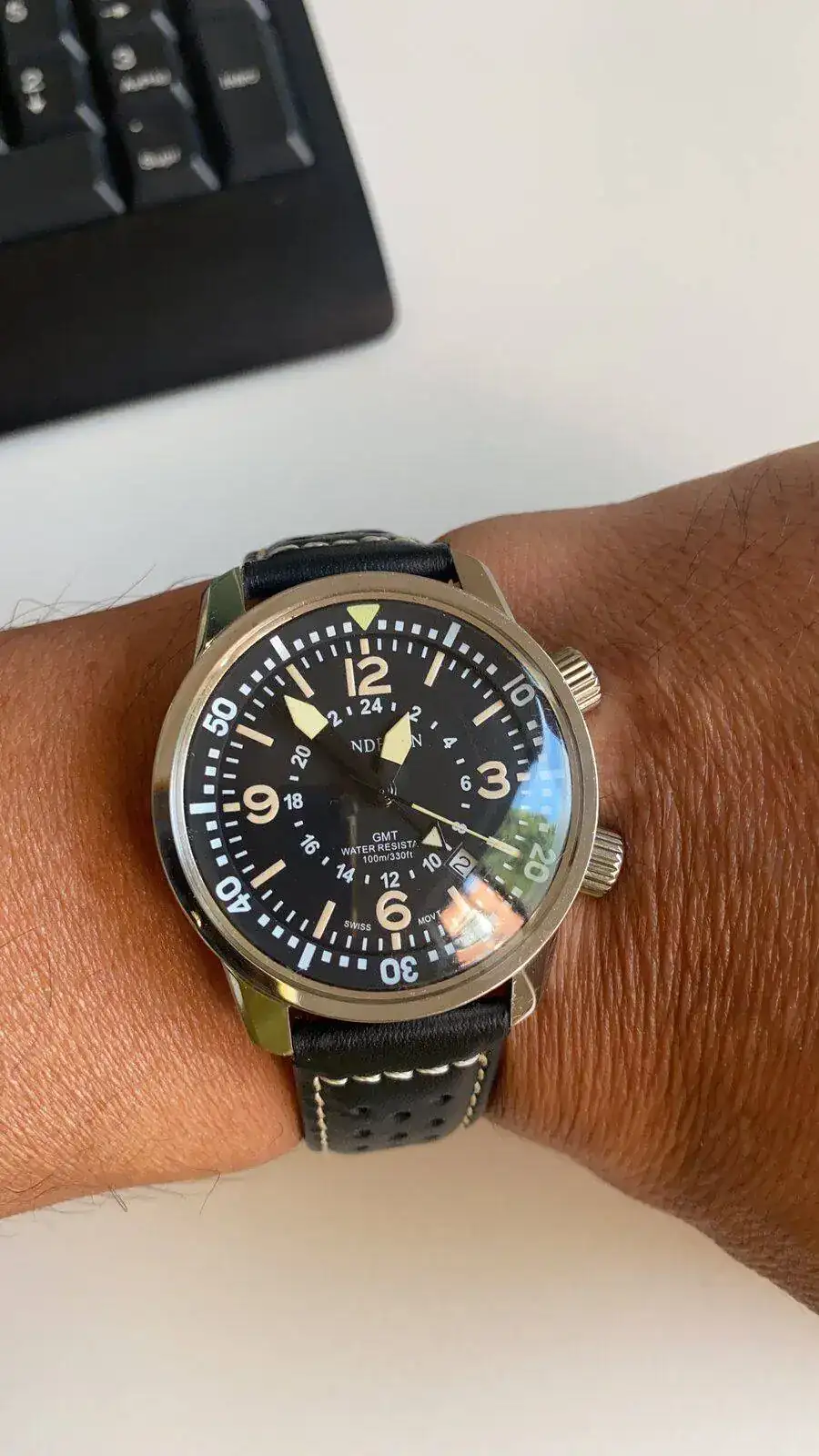 Saco a venta sin cambio este Landeron Compressor GMT precioso, poquísimo uso como se ve en el reloj y correa casi sin uso; solo destacar una pequeñísima marquita que apenas se ve en un lateral (circulo rojo en foto ampliada) os dejo características de la web, donde su pvp es de 350 mas envio. Lo dejo en 180 euros para salida rapida