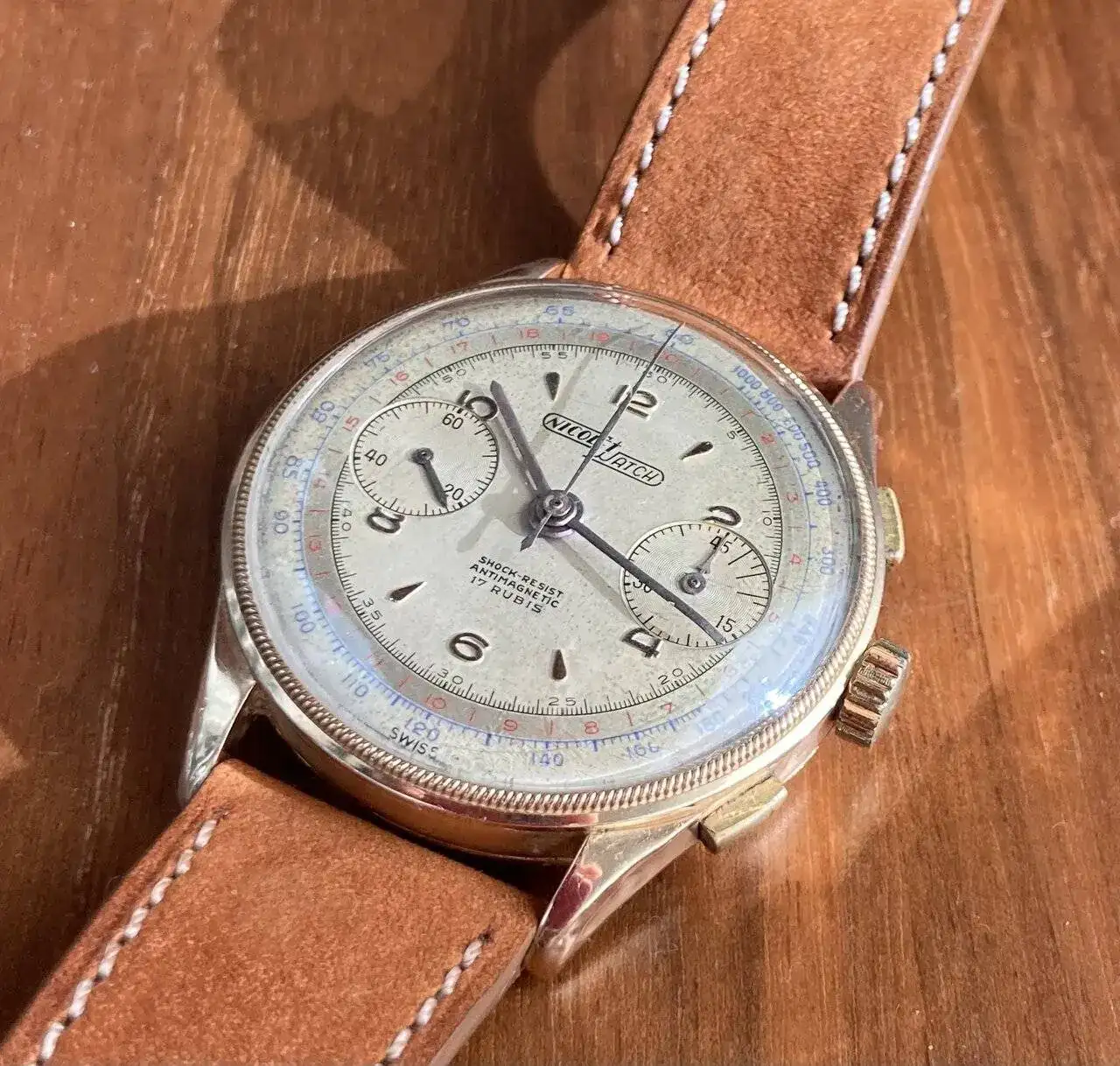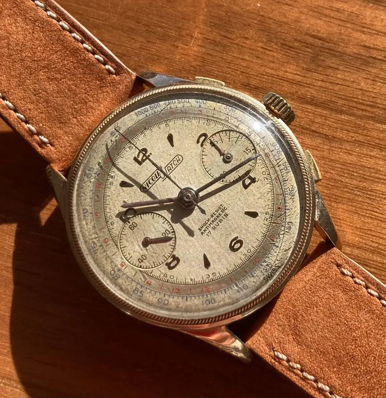 El cronógrafo que os presentó a continuación, equipa un Landeron 39. Último cronógrafo de la marca accionado mediante rueda de pilares, que resultó ser el elegido por las fuerzas de ambos bandos en la Segunda Guerra Mundial.
