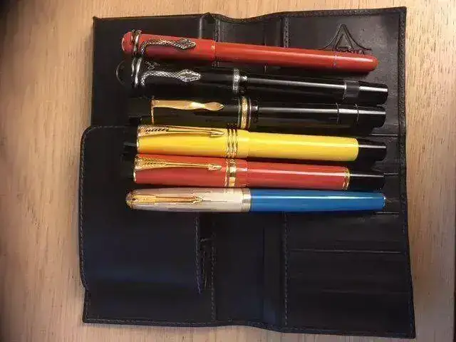 Los dos modelos de la derecha son los de lujo y llevab capucha chapada en oro y plumines de oro de 18 kt, pero son la misma pluma.