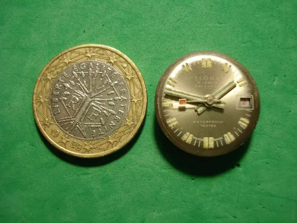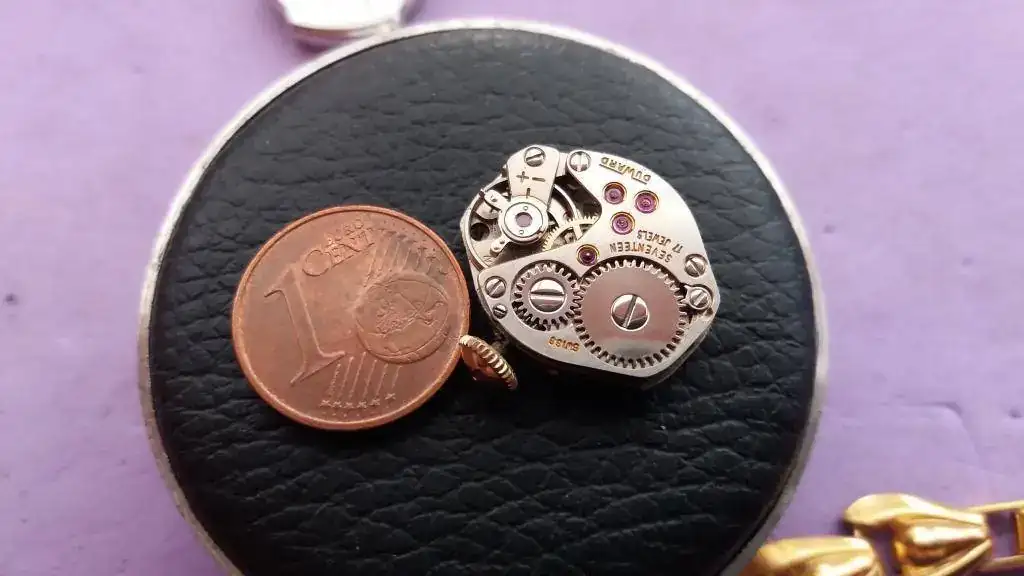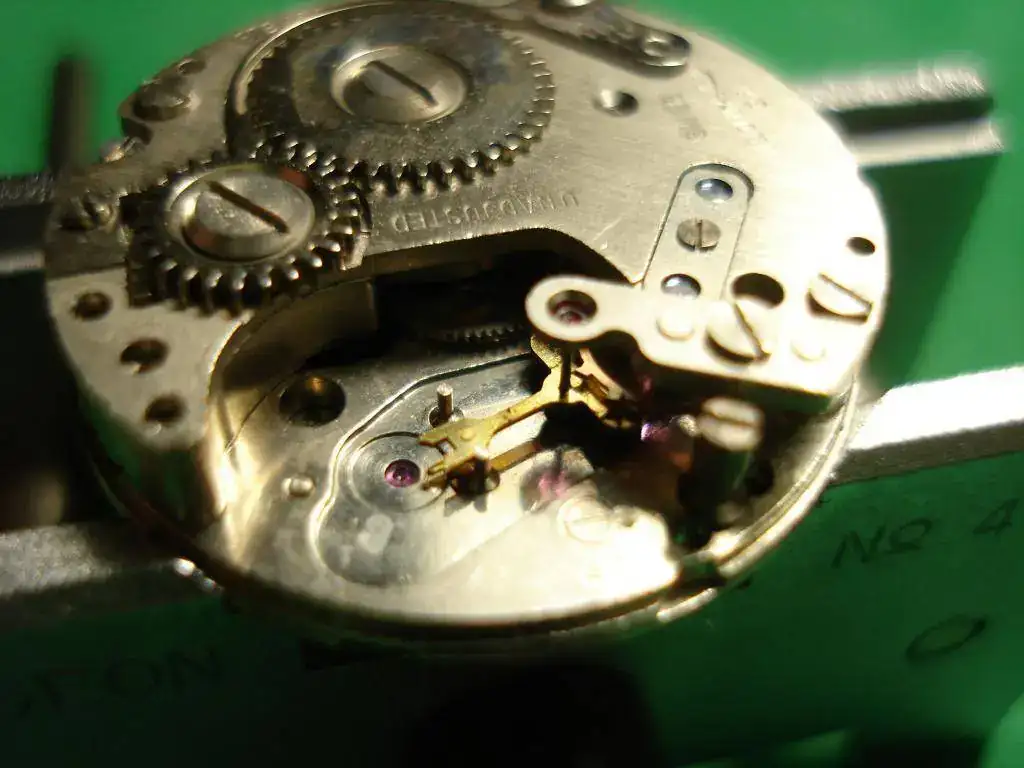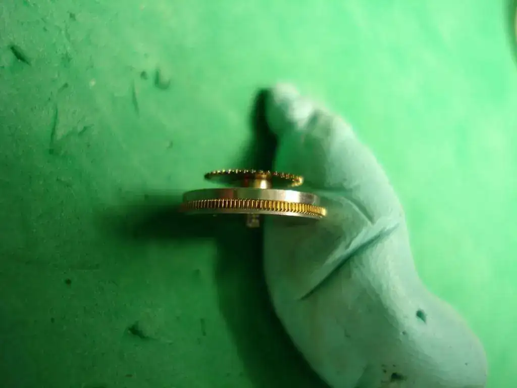 Así llegó; mucha pelusilla y bastante mierda, pá no variar, funcionaba unos pocos segundos y se paraba, también traía el puntero de la segundera un poco a la virulé... Mide unos 30mm. y la máquina bastantes menos.... Una tortura de piezas superpequeñas...