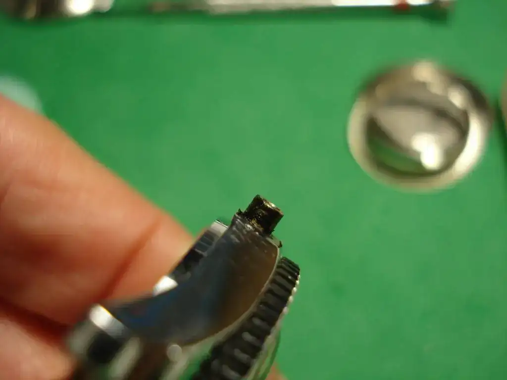 Cuando llevan una corona "waterprof" de esas que llevan una goma negra dentro, con el paso del tiempo la goma acaba en el tubo de la caja e incluso dentro del remontoir...