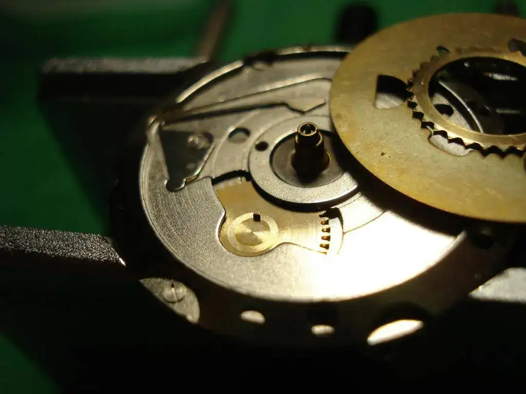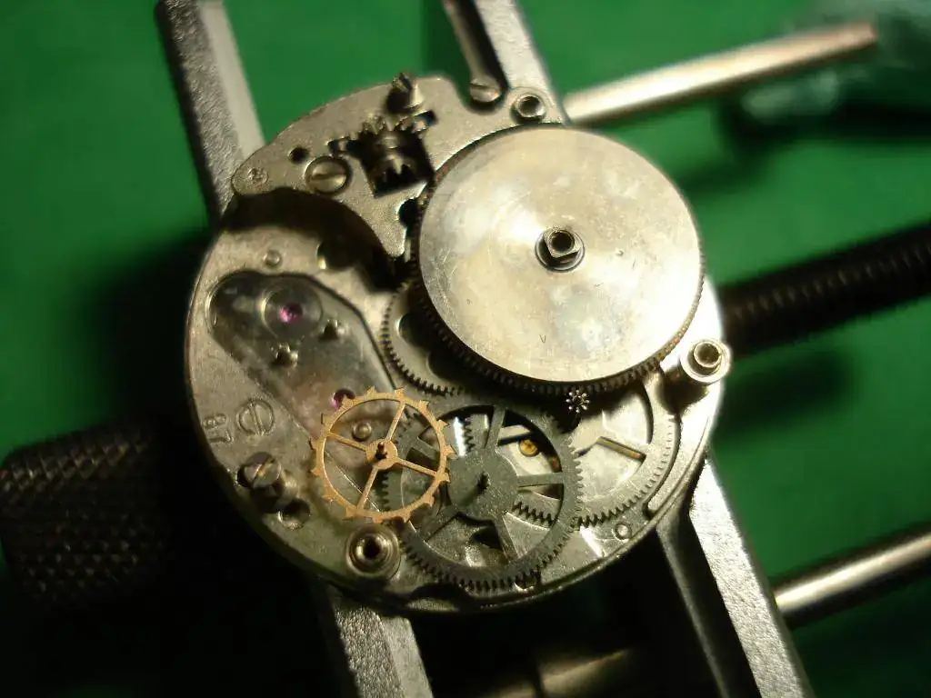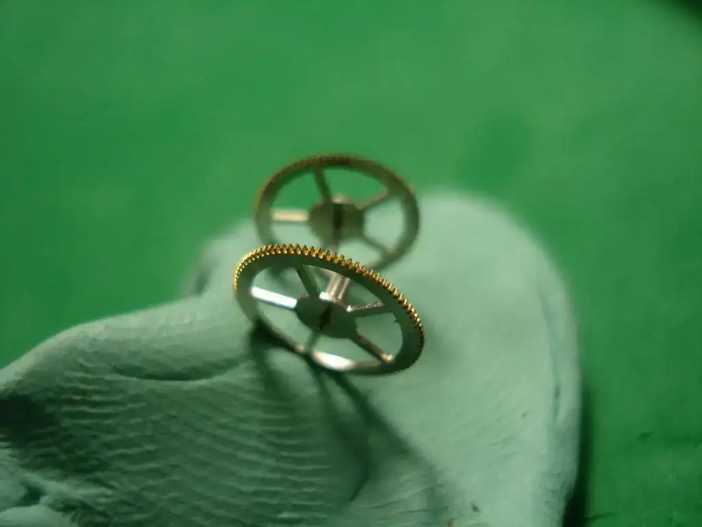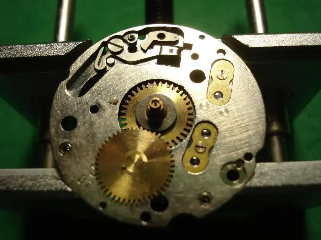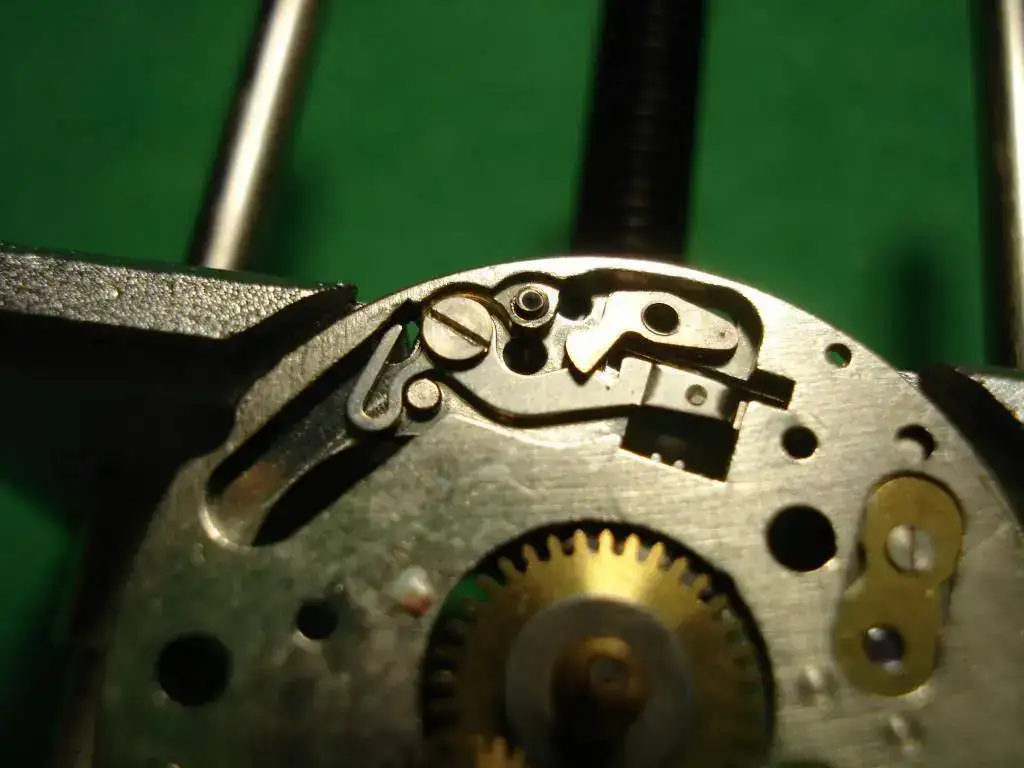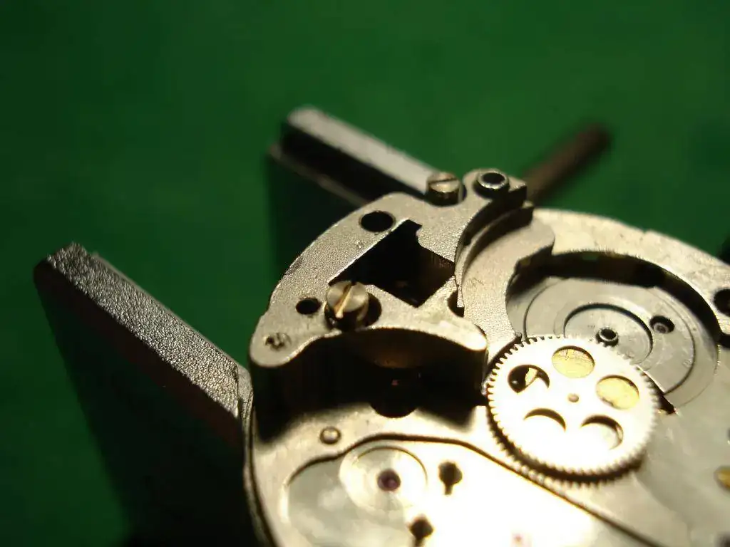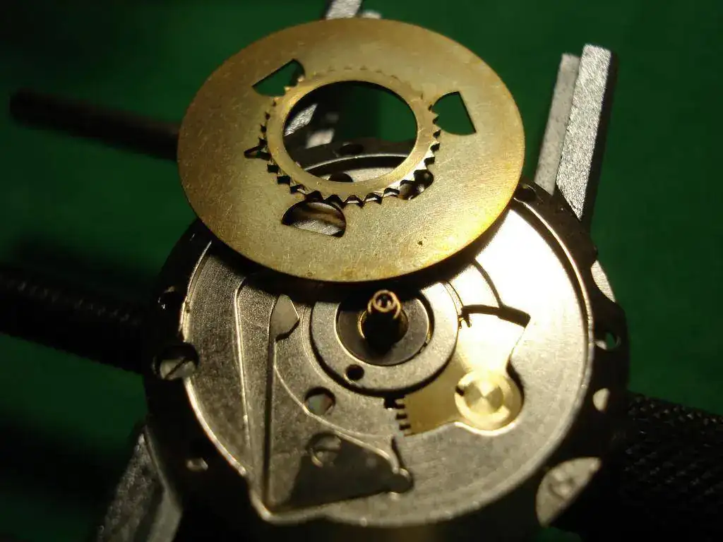 Tiene ese puente que aloja la rueda de canto y la corrediza. Y esa rueda que se ve es la de segundos, que no se puede sacar de la platina....