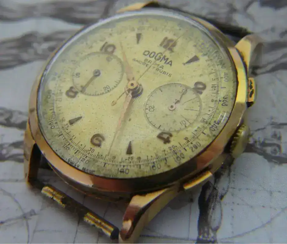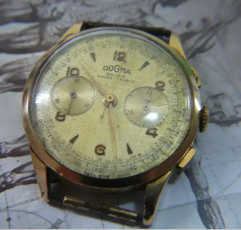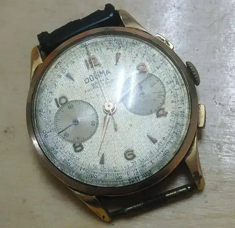 Recibido el paquete lo desembalé y me encontré un bonito crono DOGMA de esfera texturizada que conservaba todas las grafias y agujas originales y la caja no presentaba ningún roce en el chapado...