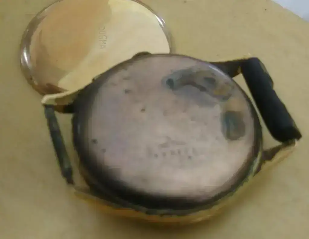 Mi sorpresa vino al darle la vuelta y encontrarme una tapa amarilla con el sello de 18 K., para comprobar de repente que la carrura también era de Oro...
