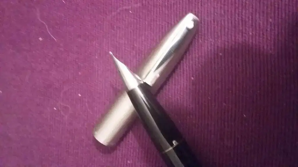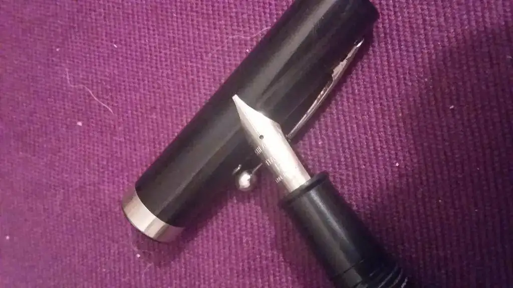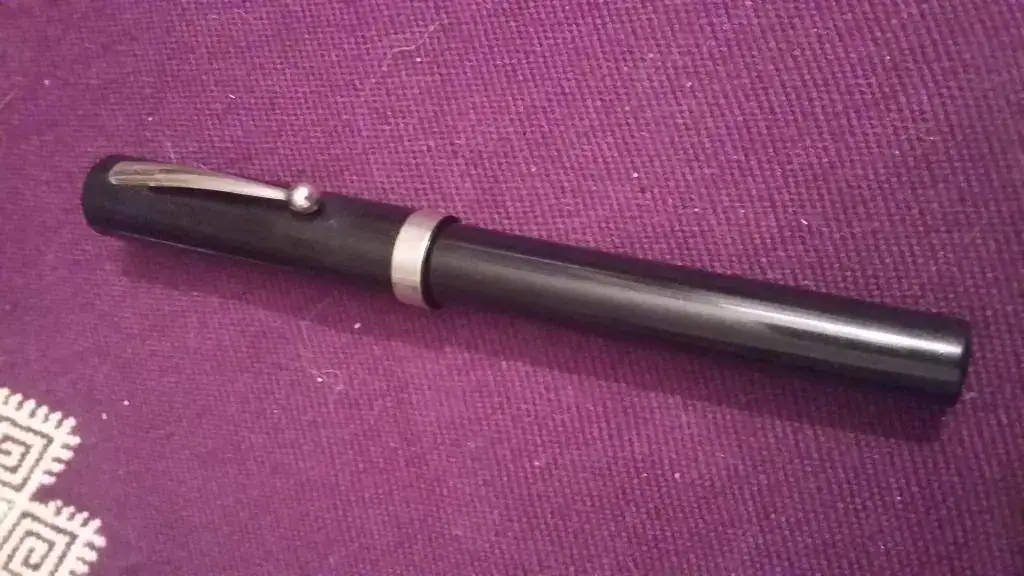 4. Sheaffer No Nonsense con plumín itálico de acero, resultado de un paseo por el mercadillo de San Alejo en Bogotá, Colombia. Me he pasado una semana para terminarla de limpiar y parece que funciona. Había trilobites fosilizados en los restos de tinta.
