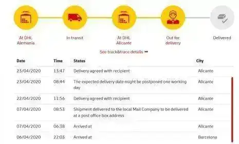 En tres dias de Alemania a Alicante, los ultimos 80 km 18 dias. No lo sabia que los paquetes tienen que pasar por cuarantena por dos semanas.::bash::