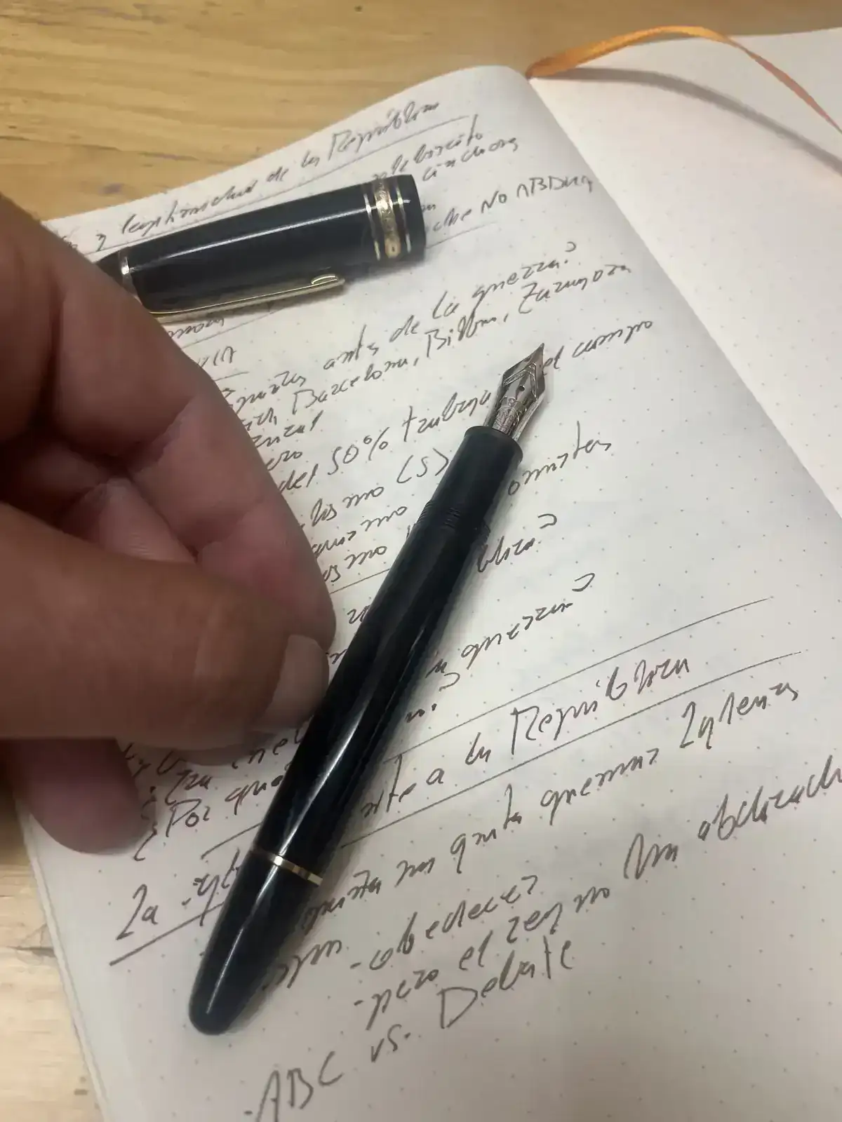 Una de estas noches, tomando notas para la clase de esta mañana, cogí una Montblanc 146 que, caí mientras escribía, fue la primera de mi colección. Recuerdo que la compré porque había que tener una. Lo siguiente que hice fue comprar otra Montblanc vintage, no por vintage sino por mucho más barata, para usar a diario. Claro, ¿cómo iba a llevar la 146 a clase o a las cafeterías? Se puede caer, se desgasta con el uso, te pueden abducir los extraterrestres y te soplan la pluma... total, que la 146, que para mí era entonces la proto-pluma, se pasó el confinamiento en su funda. Y yo tan contento de tenerla.