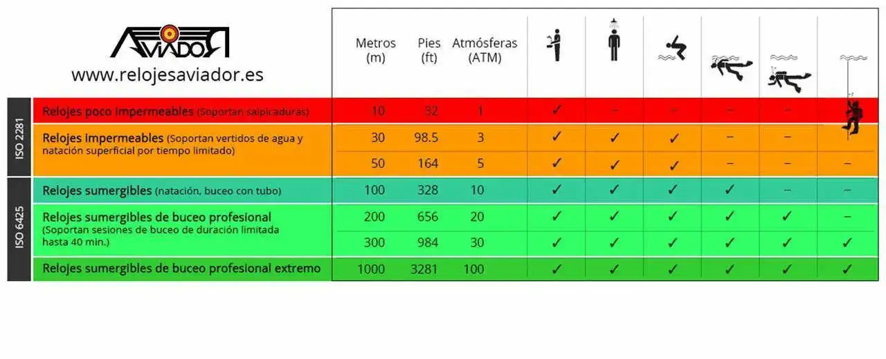 Creo que es bueno, una vez más, aclarar todo esto no vaya a ser que nos vayamos a tirar a la fosa de las Marianas y nos entre agua en el reloj... 😉