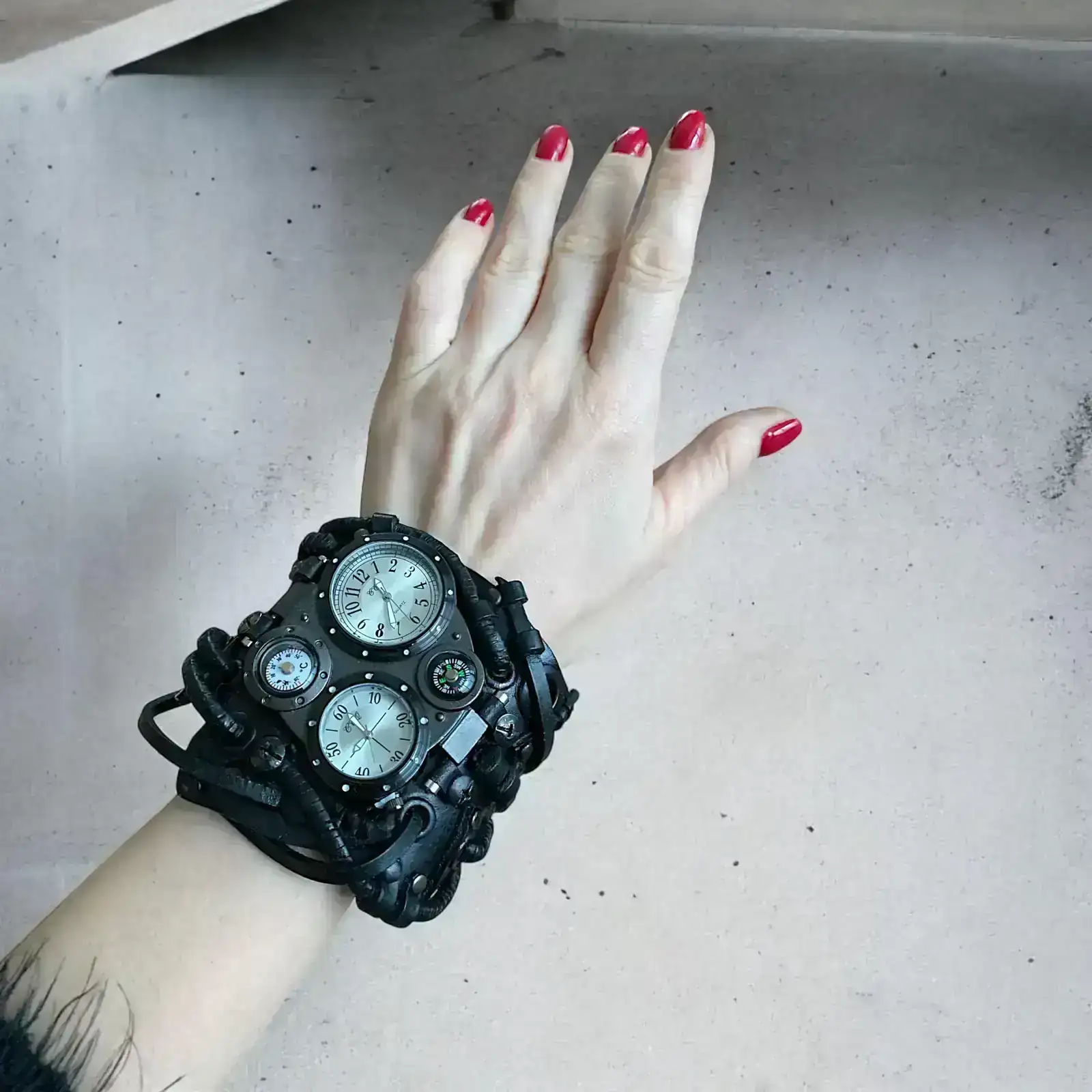Lo curioso es que en una época imaginaria tras un holocausto que ha reducido la humanidad a un mínimo reducto donde la iglesia ejerce el miedo con castigos de muerte tal como ya venía haciendo en tiempos de la inquisición, el tiempo no tiene medida o carece de importancia. Por ello que un objeto de pulsera que marca la hora sea un tesoro codiciado para pagar tributos y servicios es una quimera, pero siempre hay magia en los relojes de valor.