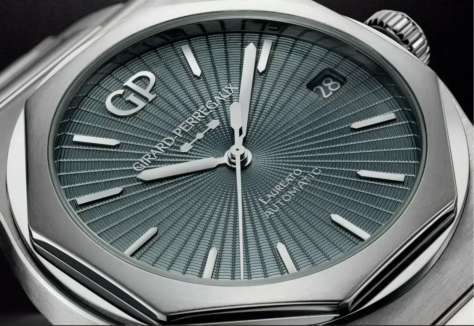 Aunque es la esfera lo que capta la atención, el resto del reloj se mantiene fiel al inconfundible lenguaje visual del Laureato. El distintivo bisel octogonal, engastado sobre un zócalo circular y una caja en forma de tonel, crea un armonioso juego de formas y luces.