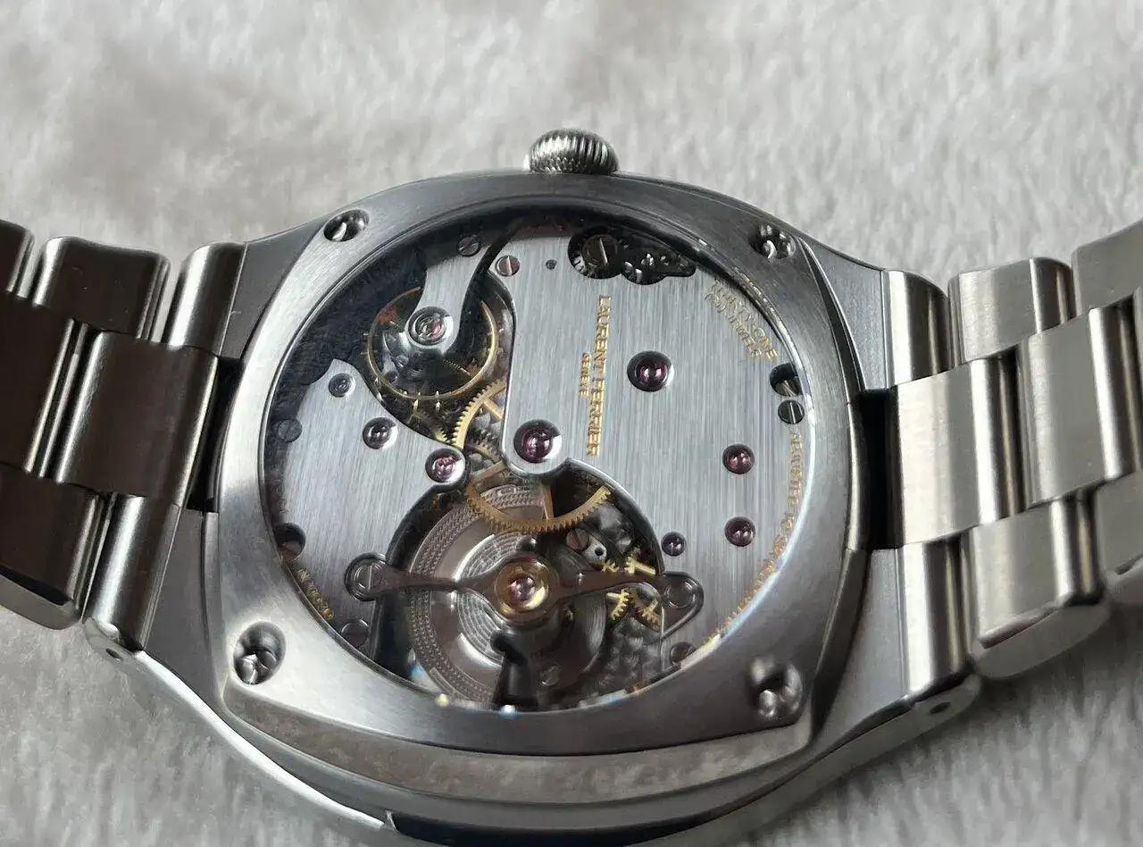 Como no, la estrella de la función en un LF son los acabados de su calibre. Calibre micro rotor completamente nuevo y segundo automático realizado jamás por la marca. A diferencia del primero, el cual se corresponde con el reloj mencionado y linkado al principio de esta presentación, en este nuevo movimiento el rotor es de platino en vez de oro. Su escape es más robusto y resistente al cambiar el famoso escape natural a un escape tradicional suizo. Y el habitual sistema de trinquete ha sido cambiado por un rodamiento de bolas unidireccional que produce una generosa reserva de marcha de 72 horas. Todo ello ofrece una mayor fortaleza que es necesaria para un reloj deportivo de uso diario.