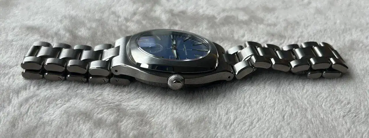 El brazalete, a pesar de ser un diseño excesivamente sobrio a mi gusto (punto claro de mejora en este aspecto especialmente en comparación con su competencia de impresionantes diseños de armis como los del Nautilus, RO, Overseas, Laureato, Streamliner, Antartique, Tonda, Octo…), sí que es un 10 en cuanto a ergonomía y comodidad. Sus eslabones, en arquitectura de tres filas, son suaves y curvos al igual que la caja, ofreciendo una sensación muy agradable en muñeca finalizando en un cierre de mariposa.