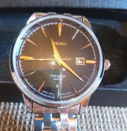 Doy por hecho que es falso porque no soy consicente de que haya modelos presage de cuarzo, he buscado en la red y no encuentro ese supuesto presage de cuarzo, con lo que aviso al vendedor que lo anuncia como reloj seiko sin estrenar, como no me hace caso, denuncio el artículo como falso, pasan las semanas y no pasa nada.