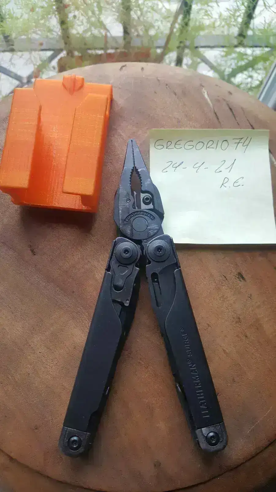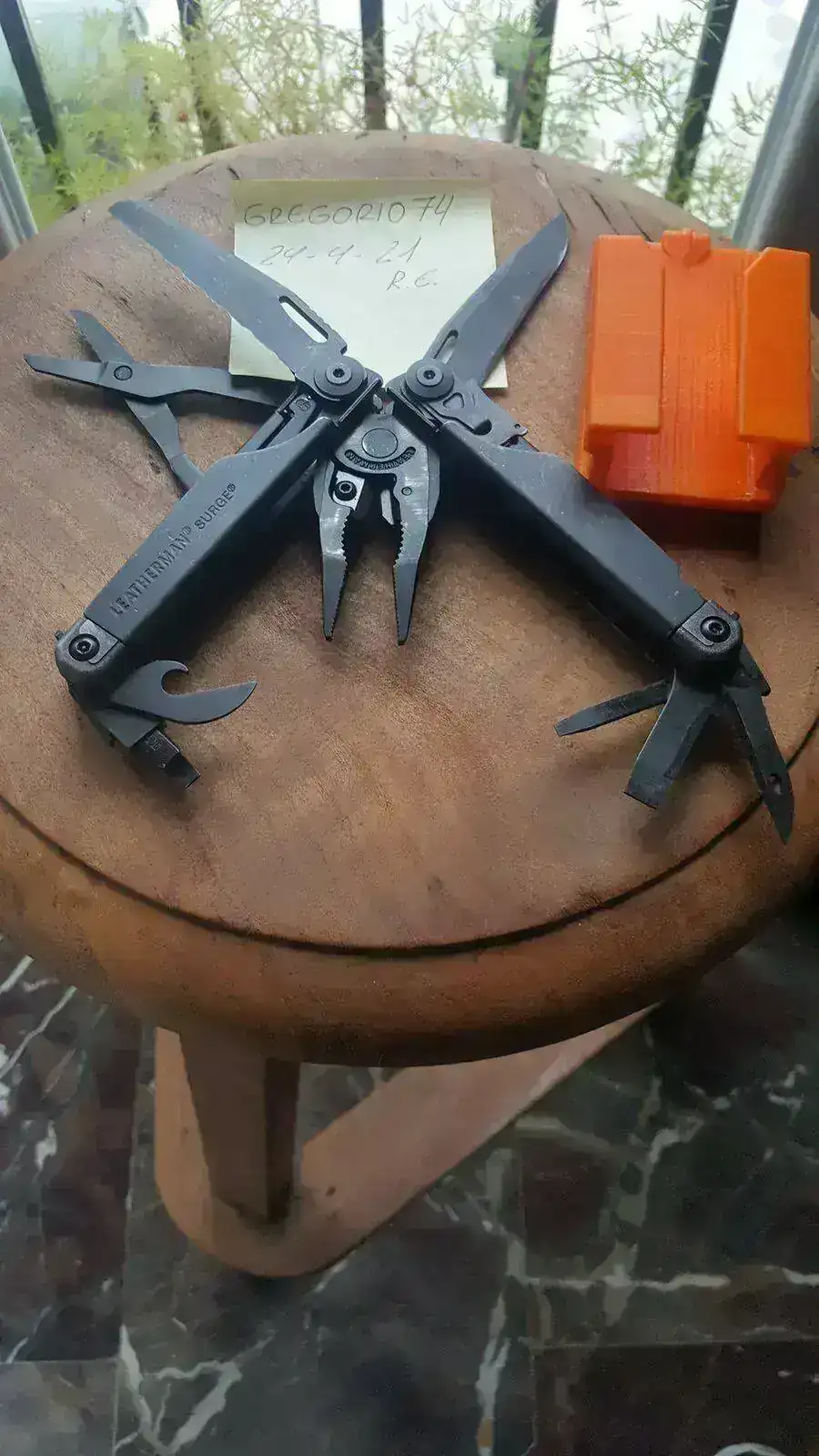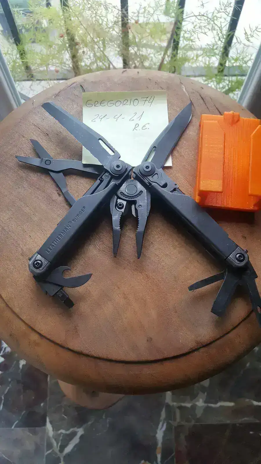 leatherman surge le compre la navaja a un amigo y la meti en un cajon, adjunto funda hecha en 3D que me la hizo el, el precio 100 envio gratuito , navaja black edition, robusta, pesa y corta muy bien, es una navaja que te sacara de mas de un apuro