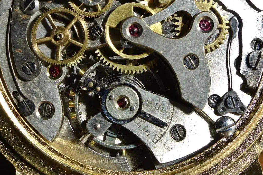 He estado viendo Ranfft buscando el Landeron al que podría corresponder, pero la ingente lista me ha disuadido de intentar cuadrarlo. Lo que sí sé es que tiene un funcionamiento convencional, esto es, arranque y paro a las dos y reseteo a las cuatro y eso lo hace un Landeron poco habitual. Creo. Lo que no he visto es ninguna marca en el propio calibre.