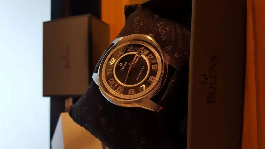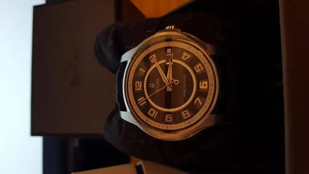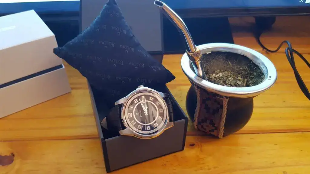 .Así fue que llegué a interesarme por este bonito (en mi opinión, claro) Bulova Precisionist 96b127 "Claremont" con malla de cuero (¿armis le llaman aquí, quizás más correctamente?). Dentro de Bulova no es un modelo caro para nada, unos AR$ 4.000 (El Euro aquí cuesta ~16.5 y el dólar un poco menos), eso sí comprado en un Shopping donde generalmente todos los precios están bastante inflados... Pero me dejan verlo, probarlo, tocarlo y me tienen muchísima paciencia. Algo que no puedo hacer todavía es comprar relojes por internet, necesito experimentarlos con mis manos y ojos para saber si me gustan! Pero me ahorraría bastante...