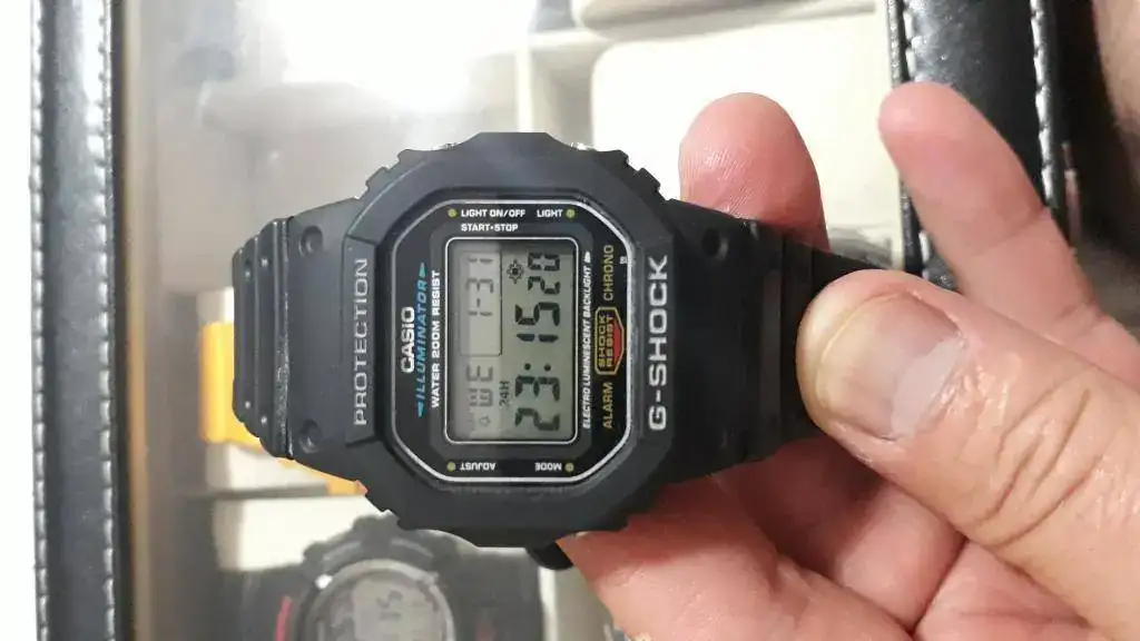 Ahora un Casio G-Shock DW 5600E, también lo compre el año pasado en otro arrebato consumista, como dato puedo señalar que al apretar los botones izquierdos y después los derechos se puede apreciar como se mueve el modulo, pensé que estaba fallado pero tome otro en la tienda y estaba igual, modulo flotante??? no creo...