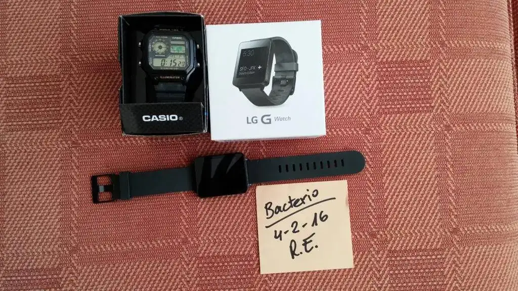 pongo en venta este LG G Smart Watch que sólo ha sido usado unas horas, está impoluto y con el plástico aún en la pantalla. Lo compré por capricho y curiosidad pero se quedó en la caja, prefiero los automáticos.