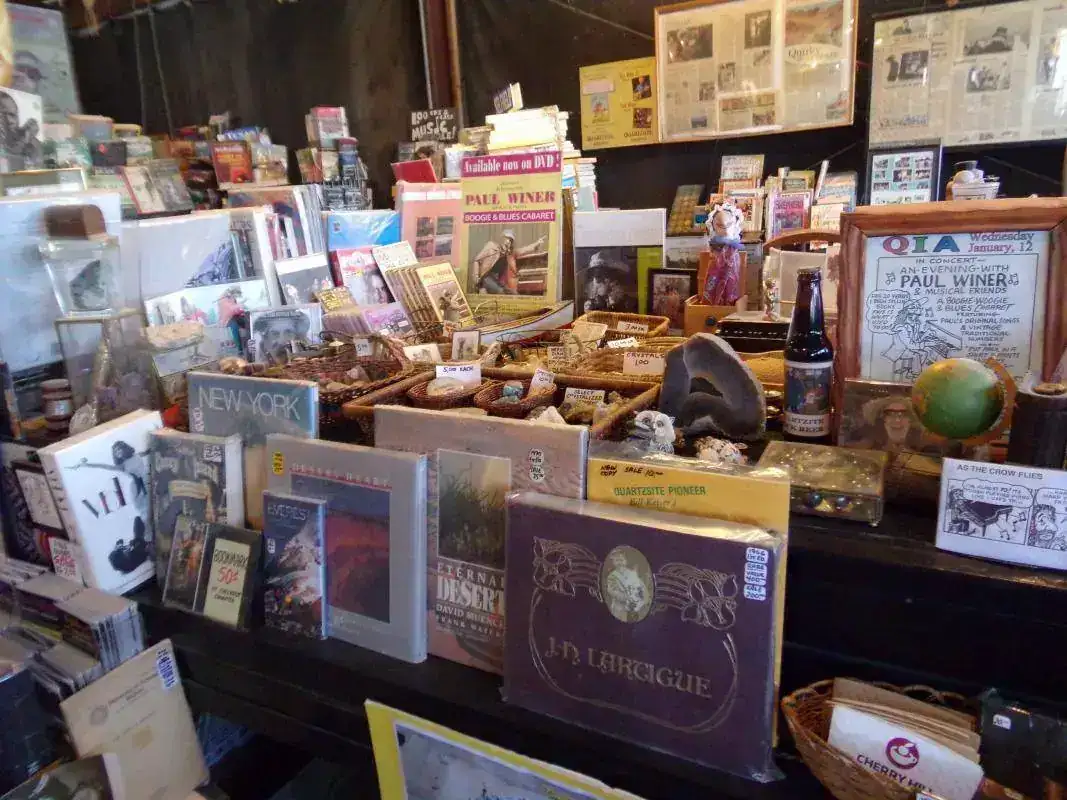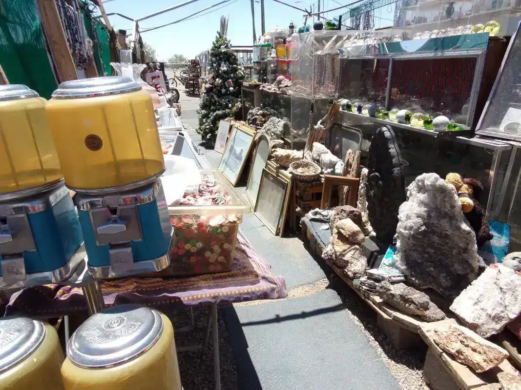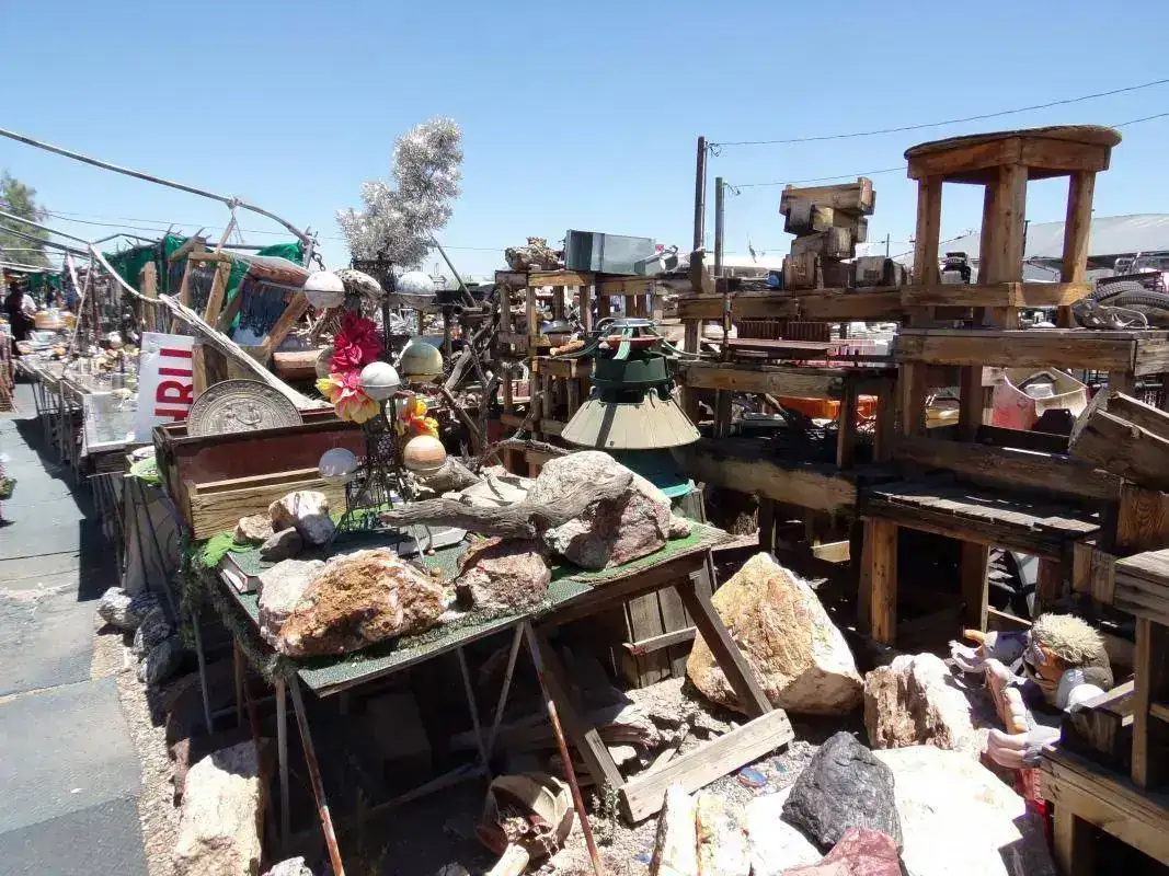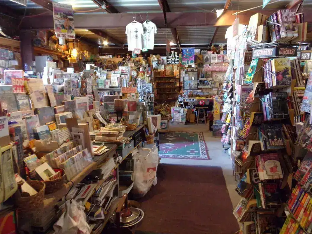 La librería es única por varias razones: en el pueblo de Quartzsite, en el que gran parte del año la temperatura raramente baja de los 40 grados y donde está la librería, viven poco menos de 4 mil habitantes; y creo no hace falta un negocio especializado de volúmenes coleccionables, primeras ediciones y rarezas. Otra razón por la que es única: alejadísima de centros urbanos, no vende online y si uno quiere algo... hay que ir hasta allá y lidiar con el dueño, que atiende desnudo ( solo un diminuto taparrabos lo salva de que la policía se lo lleve detenido ).Y otra razón por la que es única: a su lado hay un chatarrerío completamente abandonado ( su dueño pasan semanas que no va ) pero que está abierto: si uno quiere algo lo agarra y deja el dinero allí, dentro de una caja.