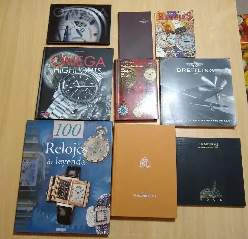 Vendo lote de libros, fascículos y catálogos de relojes. La venta es para Argentina. Pido $10.000 argentinos.
