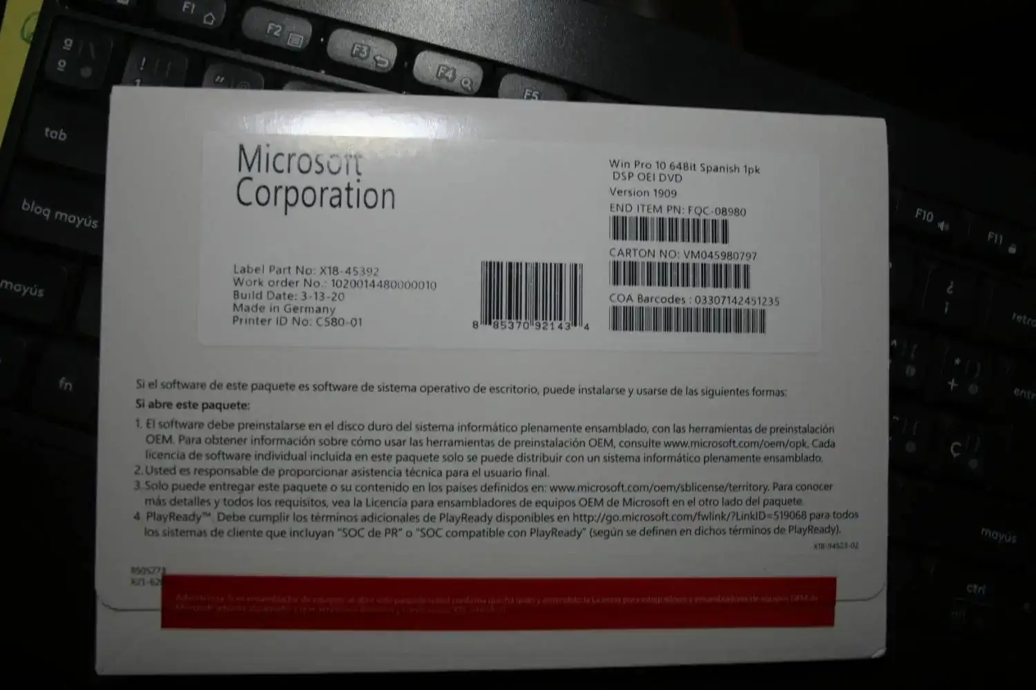 Hola, tengo 4 licencias de Microsoft del programa operativo Windows 10 Pro 64 bits en español, para empresas, por supuesto originales y, por supuesto, sin abrir (no son de esas incluseras que se venden a 10 €)