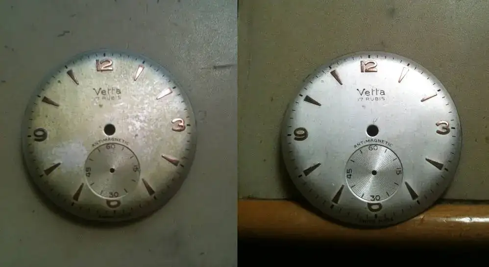 ¿Sería, por ejemplo, un disparate usar un bastoncillo de oídos con alcohol de limpieza (isopropílico, sin aditivos o perfumes) y pasar suavemente por esas zonas del dial que parecen mugre? ¿Me recomendáis otro producto? O mejor no tocar? (Ya digo que si se puede hacer algo en casa bien, tampoco tenía excesivo interés en mandarlo a relojero y demás).