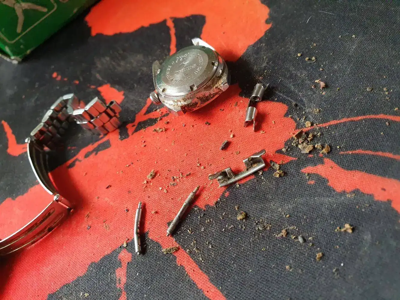 Es el típico Seiko bañado en dorado (no es oro) comprado en Andorra como souvenir a principios de los 70, de cuarzo, sin water resist, sin corona roscada ni nada y la buena mujer, pues como lo usa para ver la hora y nada más lo ha ido dejando lo ha ido dejando y ahora estamos como estamos. Con roña que tiene 20 años más que yo jajajaja