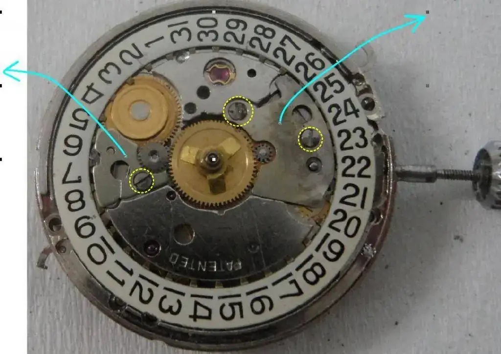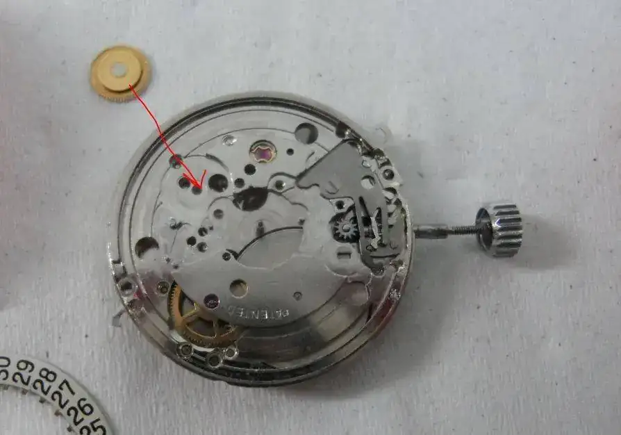 Retiro las tres ruedas Minutero ( Otra de trasmisión que no se como se llama y la pequeña del cambio rápido de fecha...
