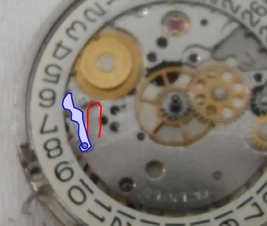 1 - Mover la tija sin agujas en posición de cambio de hora y darle hacia adelante hasta que veas que el calendario va ha realizar el cambio de dia... CLICK... cambia el dia y te paras..