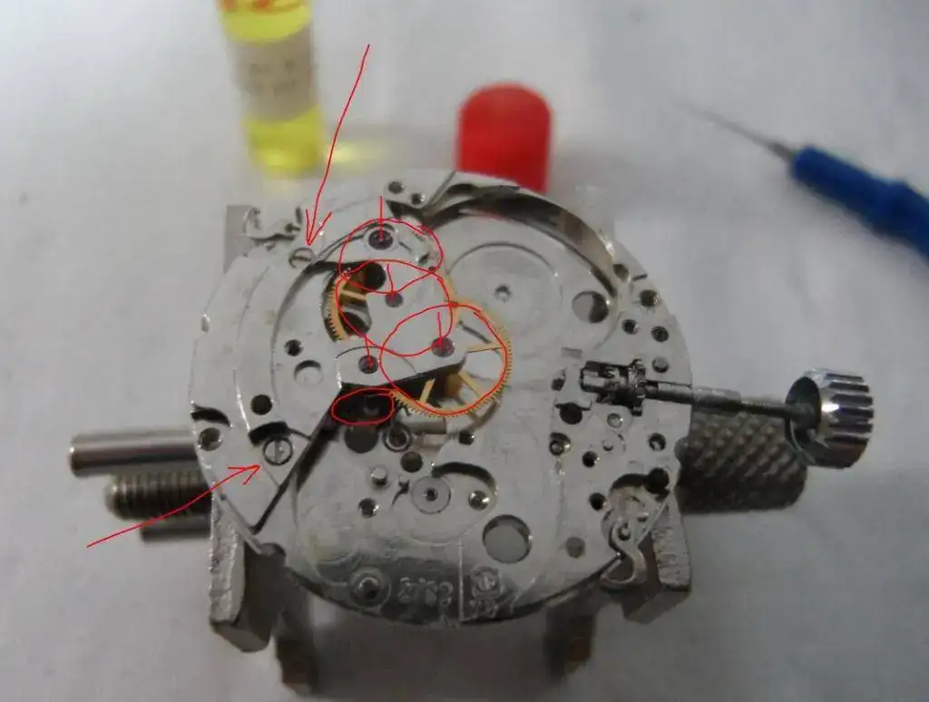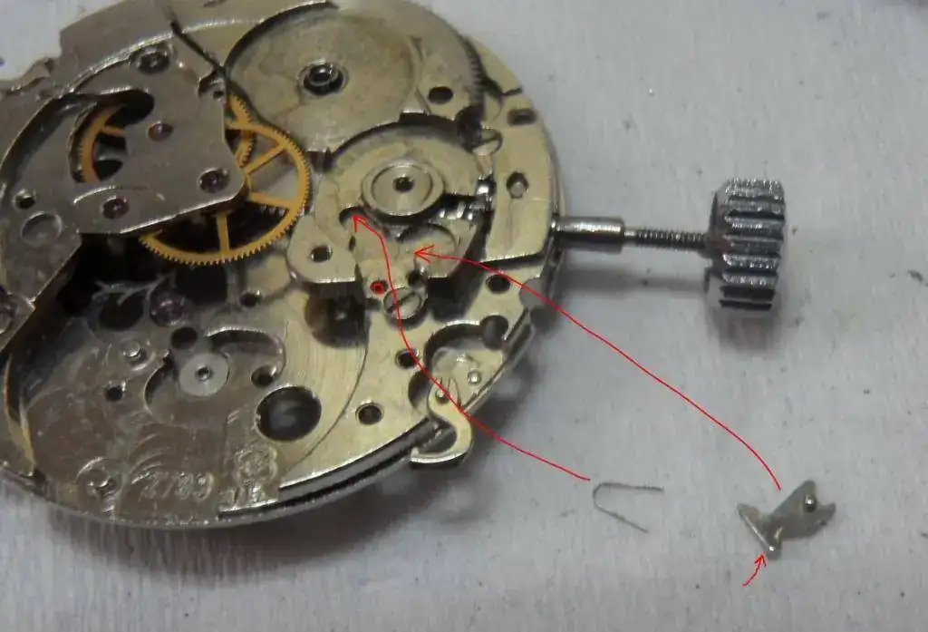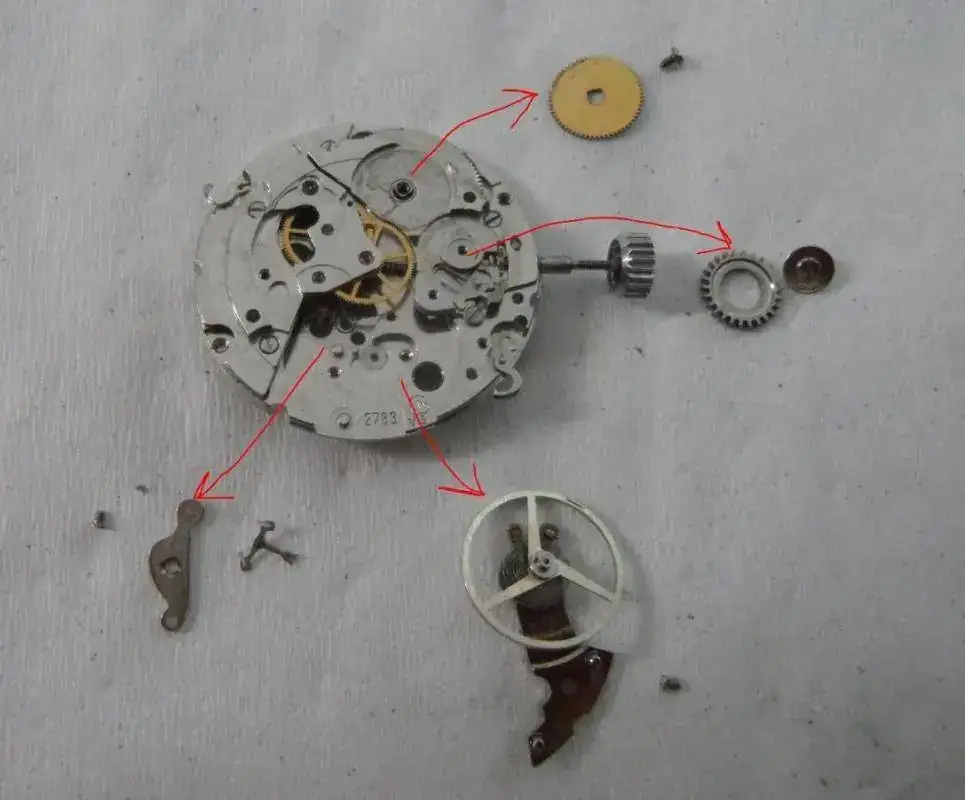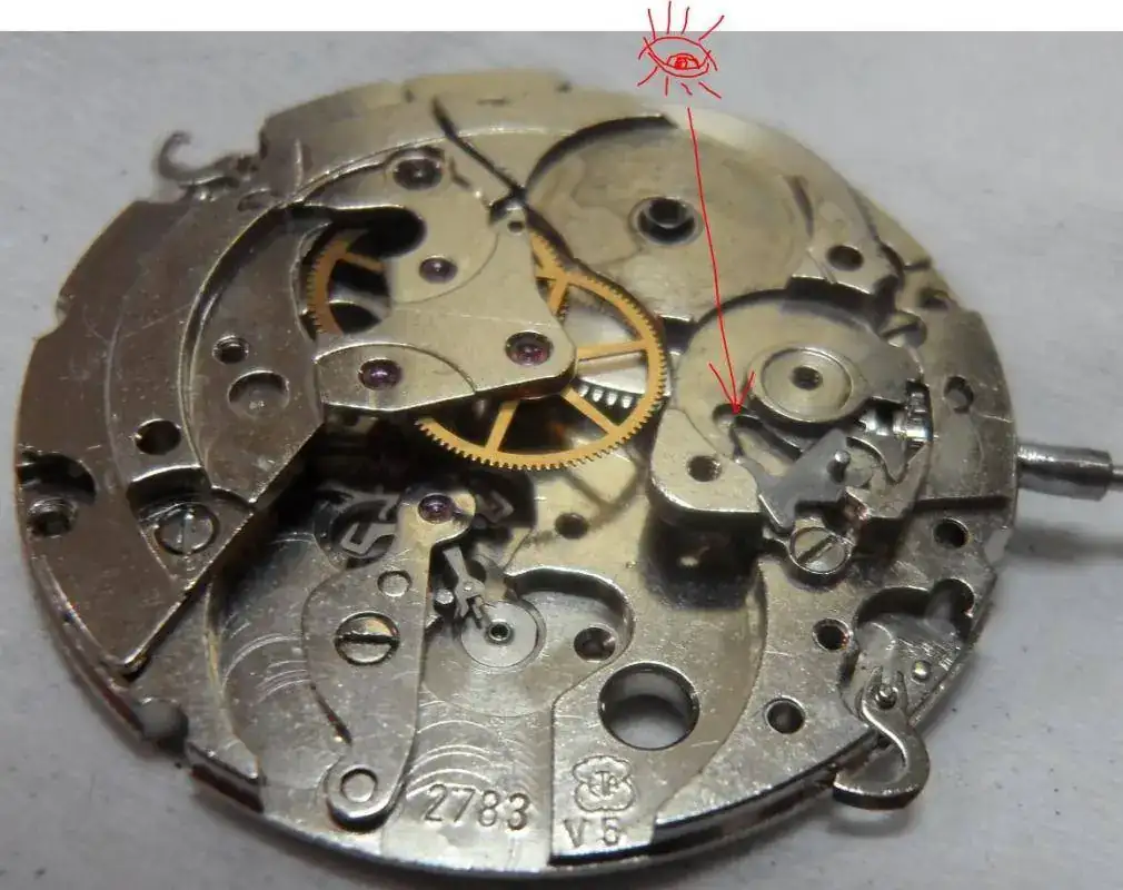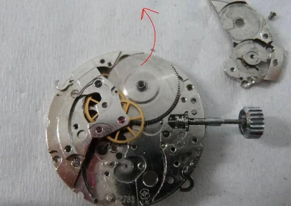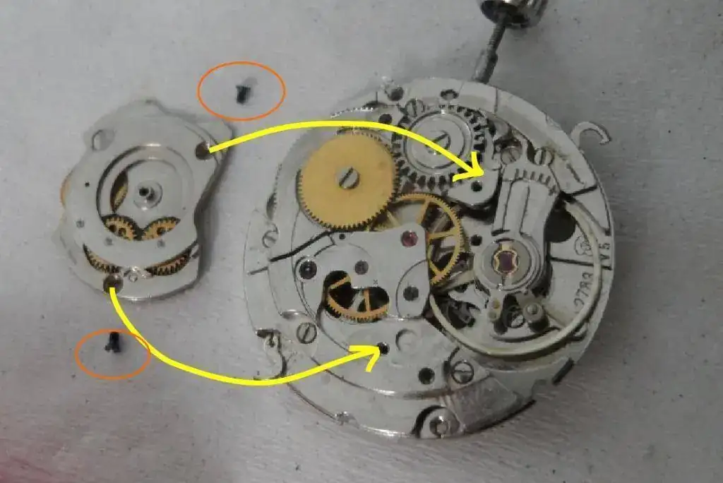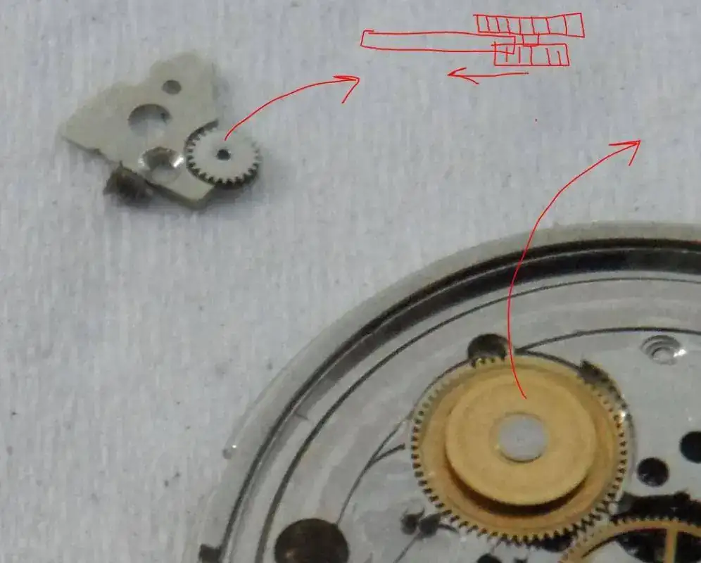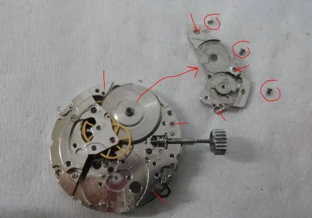 Para desmontar el puente del rodaje se quitarían los dos tornillos y se sacarían las tres ruedas y la rueda de escape y luego habría que montarlas y eso lleva un rato....