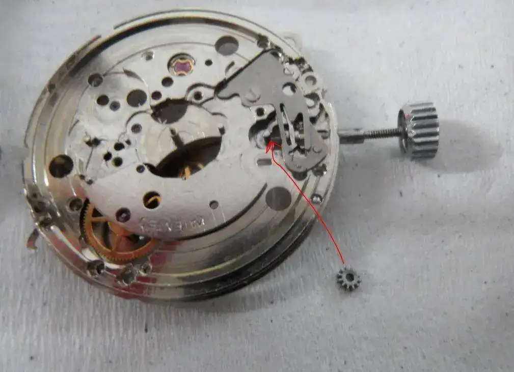 Ojo que la rueda de corona que puede lleva una arandela. no perderla.... En este caso no la lleva