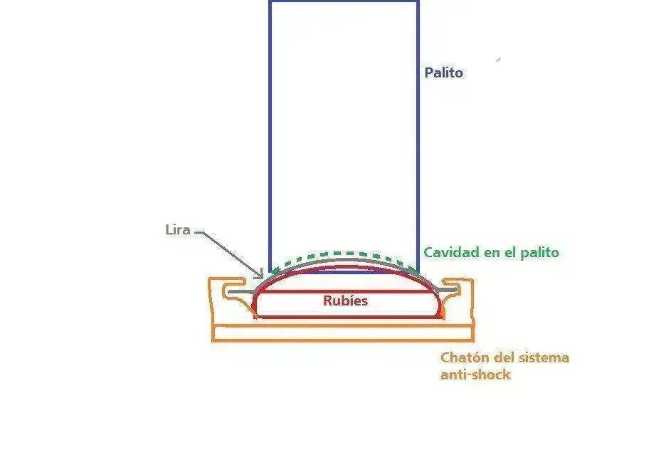 Atención al muelle y al trinquete que en este mecanismo frena la rueda de corona en vez del rochete.