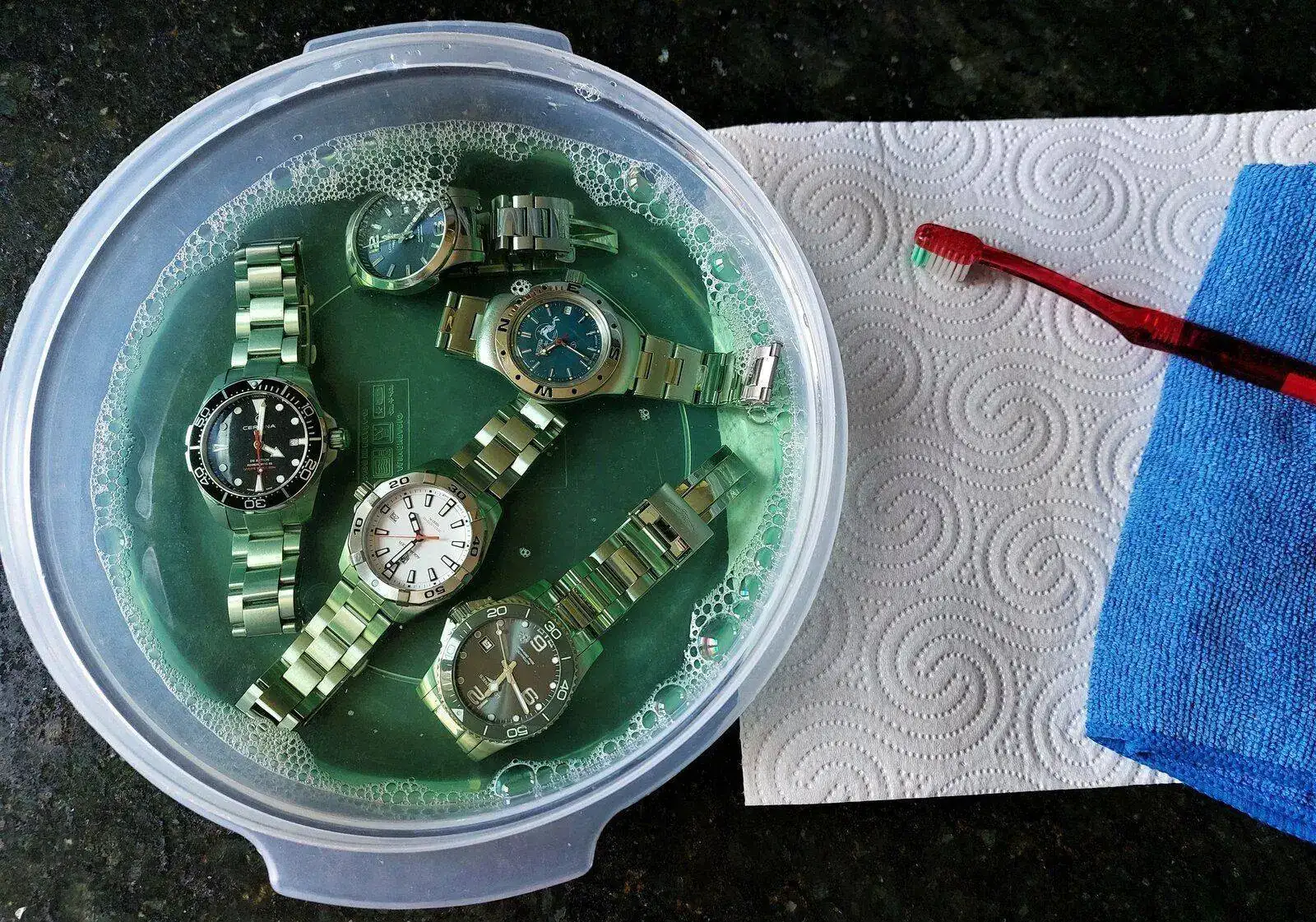 Depende el uso y la tralla que les desJamás he lavado un reloj sumergible, me limito a ducharme con el que lleve puesto en ese momento o aprovechar a darle un agua al lavarme las manos. Y los tengo todos impolutos