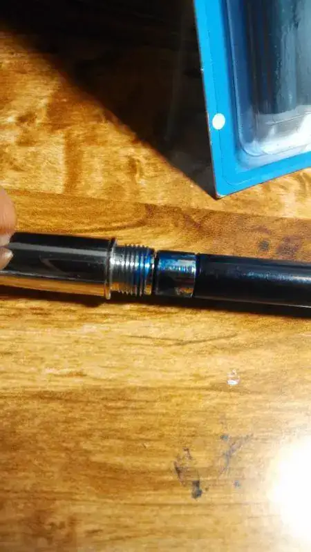 y me siento desanimado porque todo fue por ser un descuidado. Pude tomarle algunas fotos con mi celular que fue bastante difícil enfocar en un objetivo muy diminuto para la cámara. @Cthulu: Disculpa mi ignorancia pero, ¿dónde consigo amoníaco? La verdad yo sólo puedo desmontar la pluma en 2 partes, el cartucho recargable y la pluma si alguien sabe cómo desmontar una Sheaffer hágamelo saber.