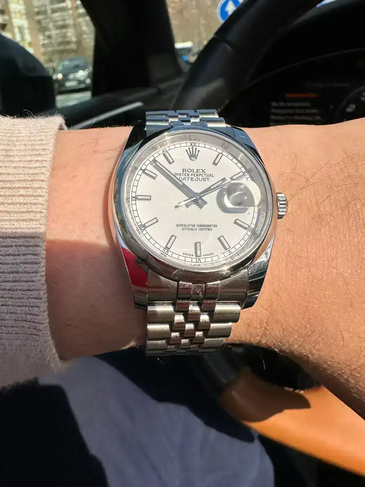 Pero ví el 36 mm en la muñeca de un amigo,1.80m y atlético y lucía excelente, una mezcla de refinamiento , calidad y prestancia inigualables.