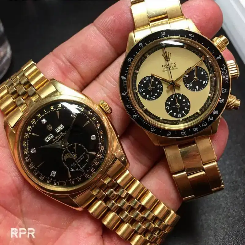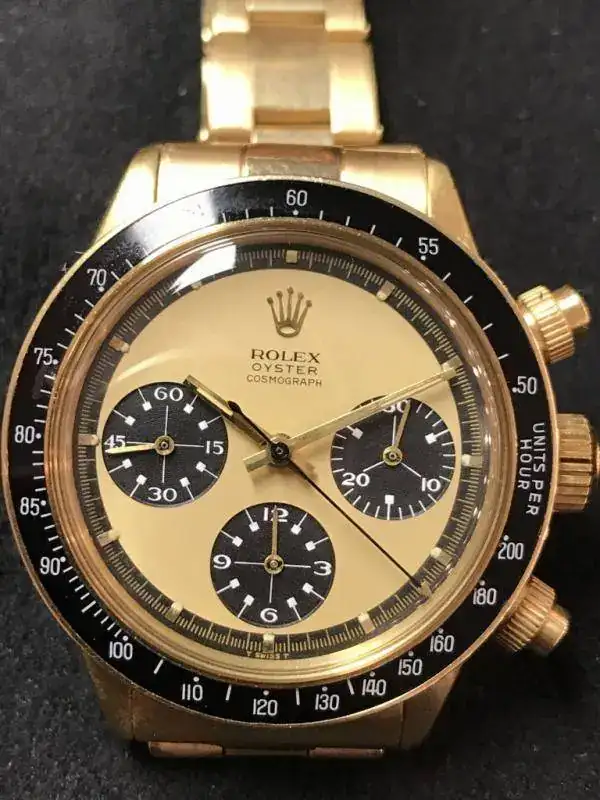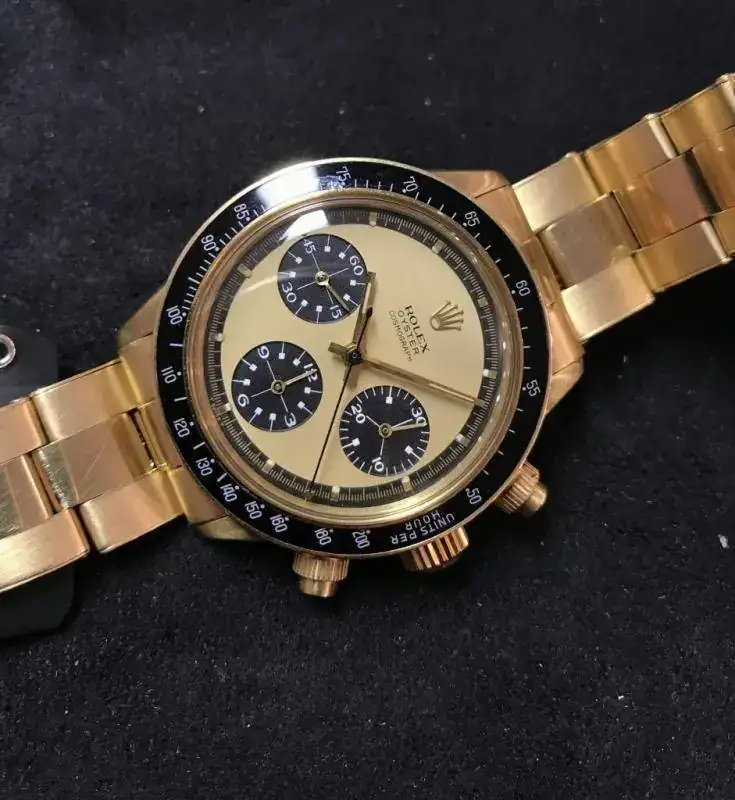 Después, en vinieron otro Daytona Paul Newman ref 6263 de oro vendido por 3.722.000 CHF con su esfera limón, impoluto incluidos pulsadores originales, uno de 3 conocidos.